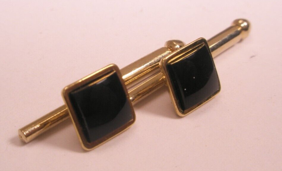 SINGLES 2 1/4 Black Square Vintage SWANK Formal Tux Prom Groom Shirt Stud b230