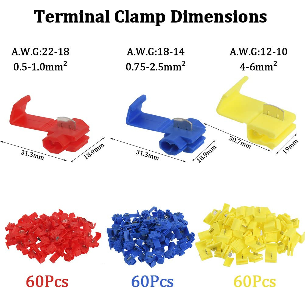 180Pcs Quick Splice Wire Connectors, Solderless Snap Wire Splice Terminal Joi...