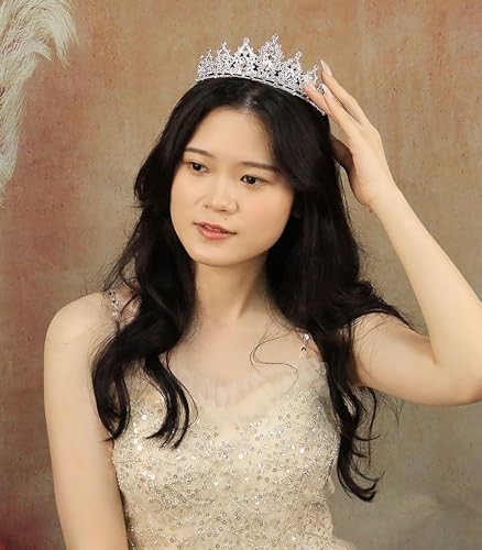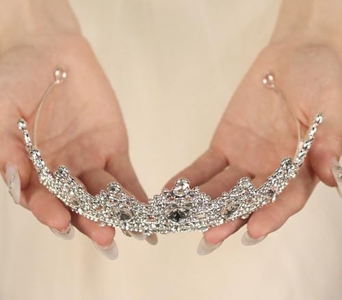 Silver Wedding Crystal Tiara Crown for Women Sparkling Rhinestone Silver-white