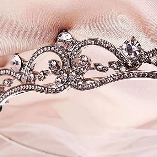 HJYHYN Rhinestone Crystal Bridal Tiara Princess Crown for Women and Silver
