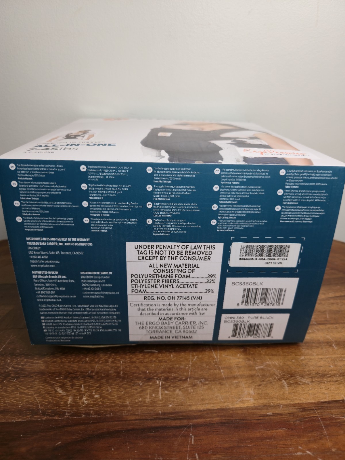 Ergo Baby Omni 360 All Positions Baby Carrier Pure Black Lumbar Support With Box