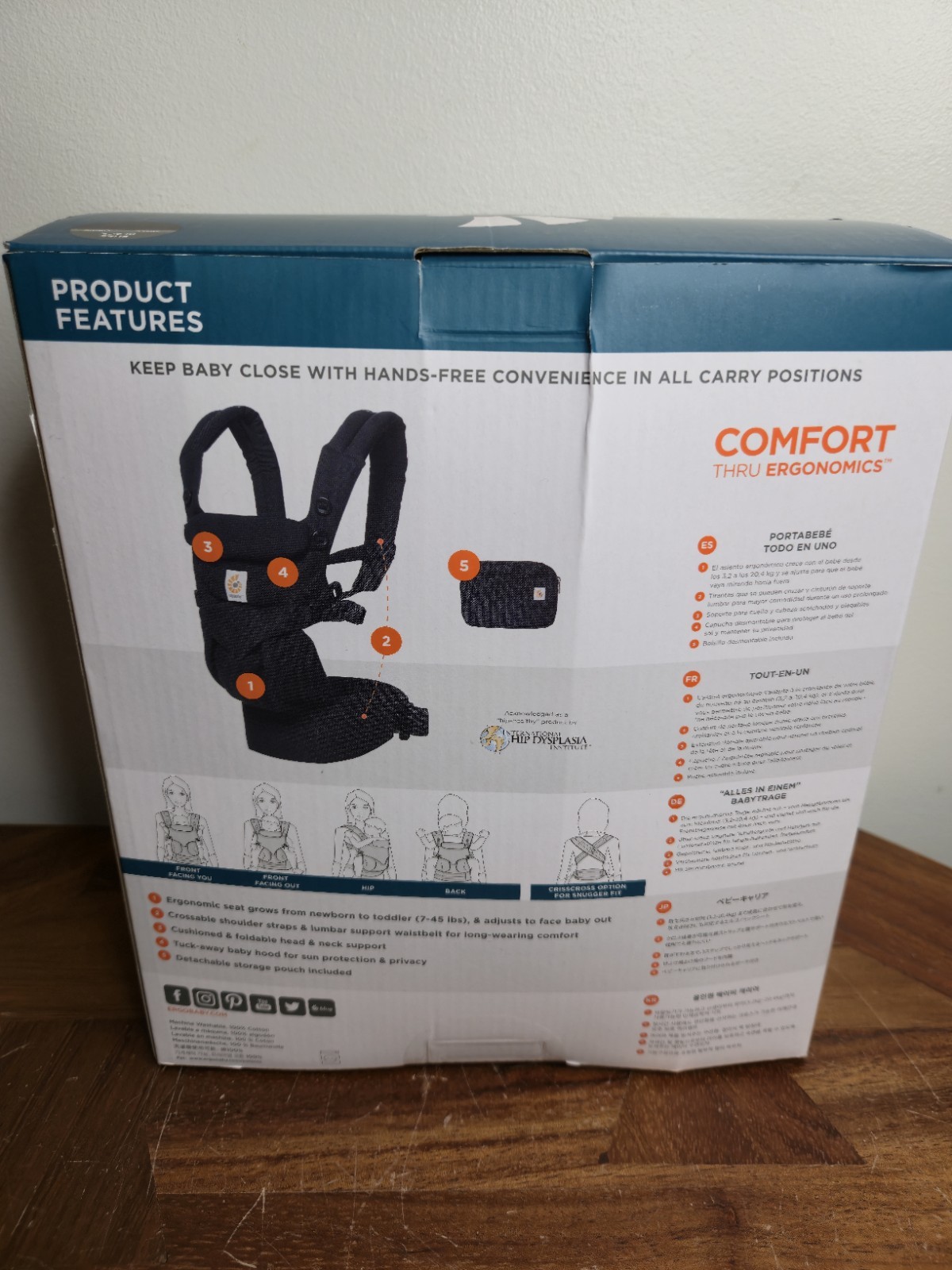 как выглядит Ergo Baby Omni 360 All Positions Baby Carrier Pure Black Lumbar Support With Box фото