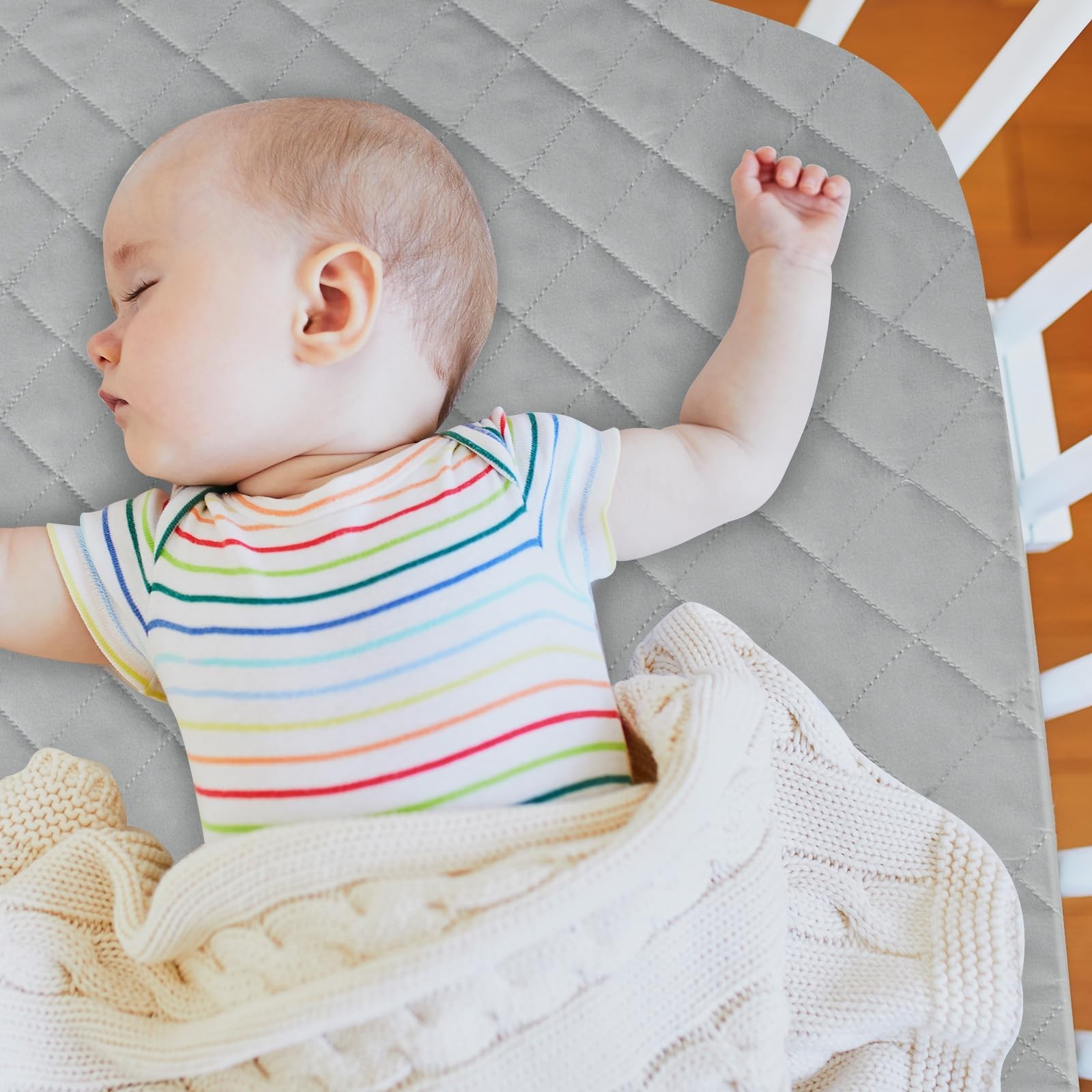 как выглядит Mini Crib Mattress Protector 2 Pack, Waterproof Mini Crib Mattress Pad Cover ... фото