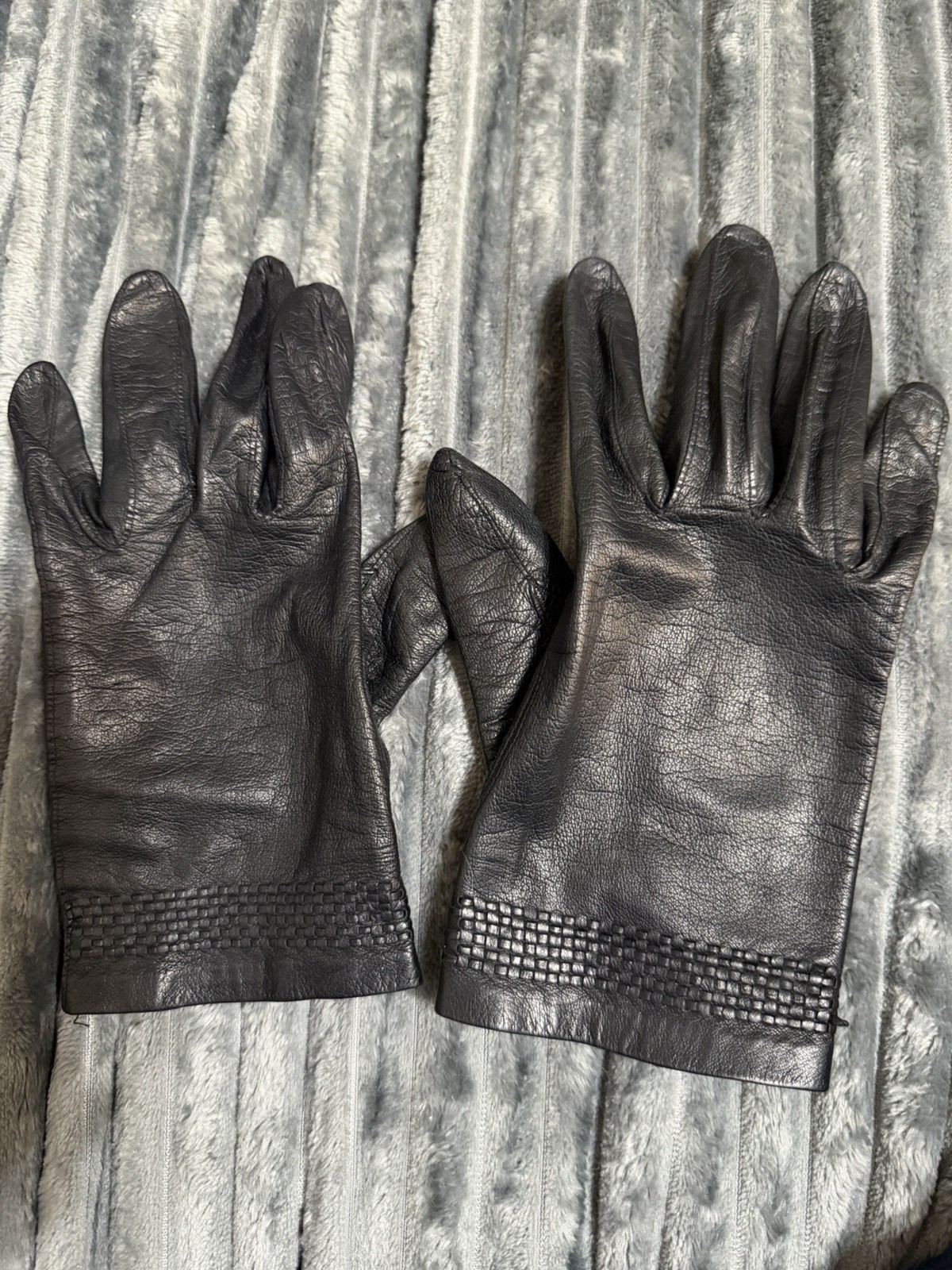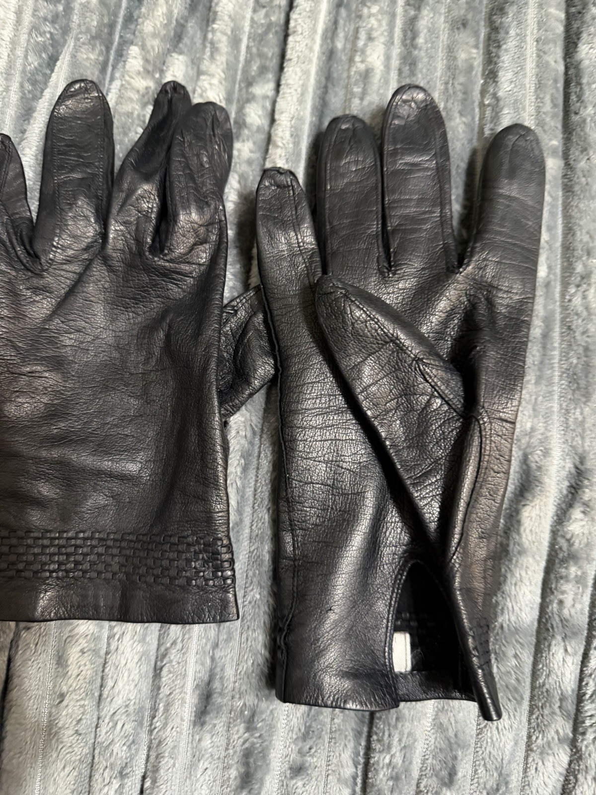 как выглядит Vintage Genuine Leather Black Gloves Made In Italy Women