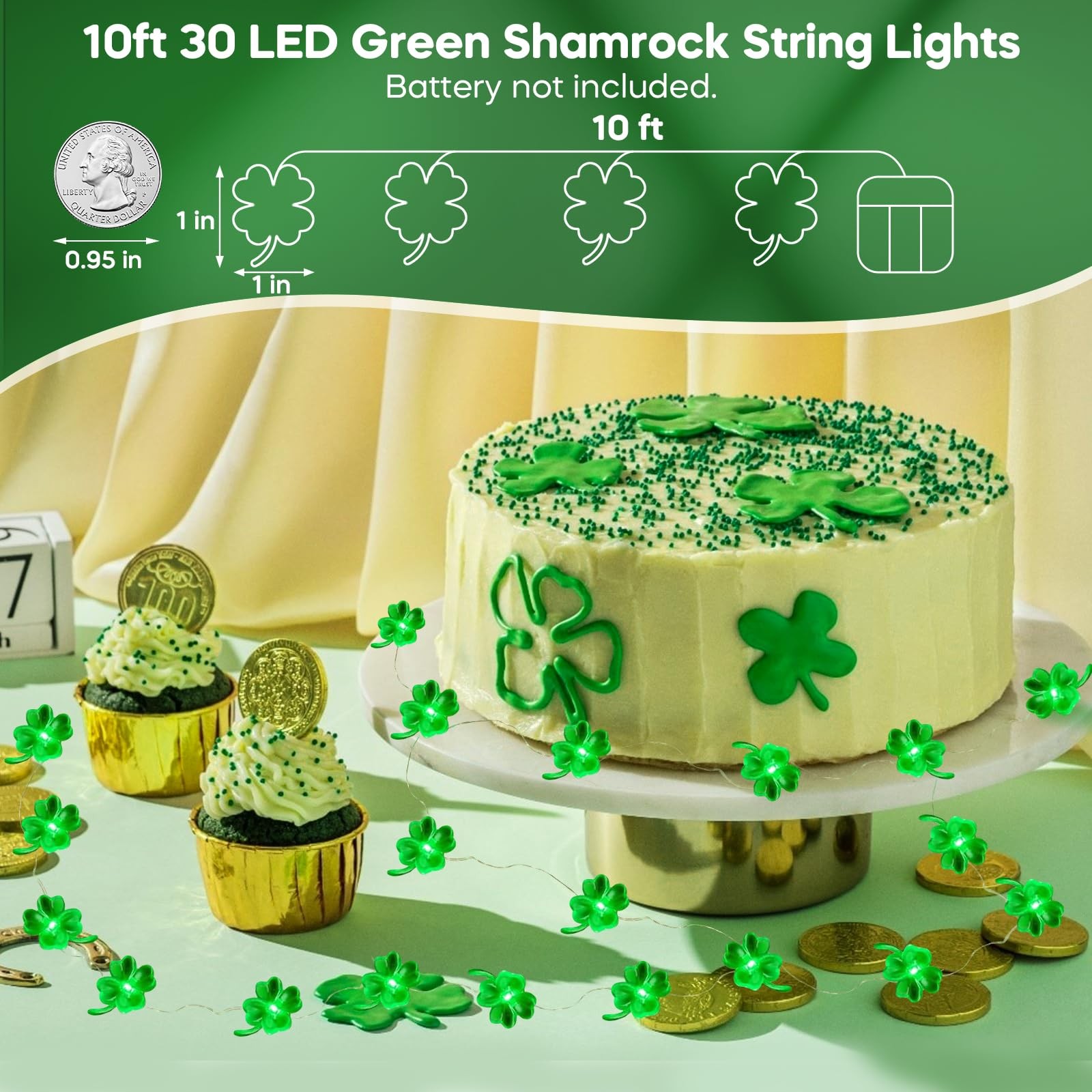 St Patricks Day Decorations String Lights, 10FT 30LED Green Shamrock String Ligh