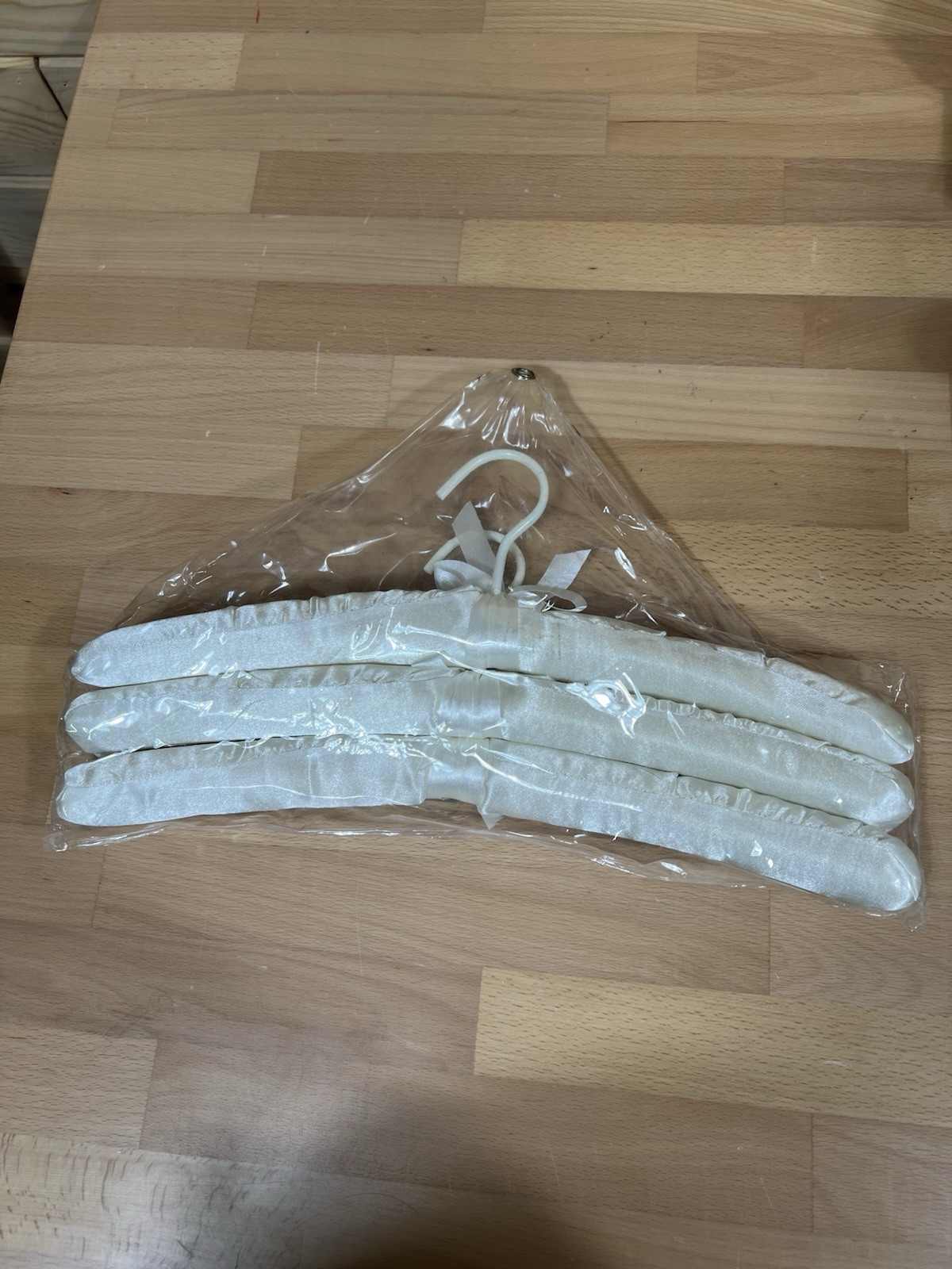 как выглядит VTG Ivory Satin Covered Hangers Padded Ribbons Lot of 3 фото