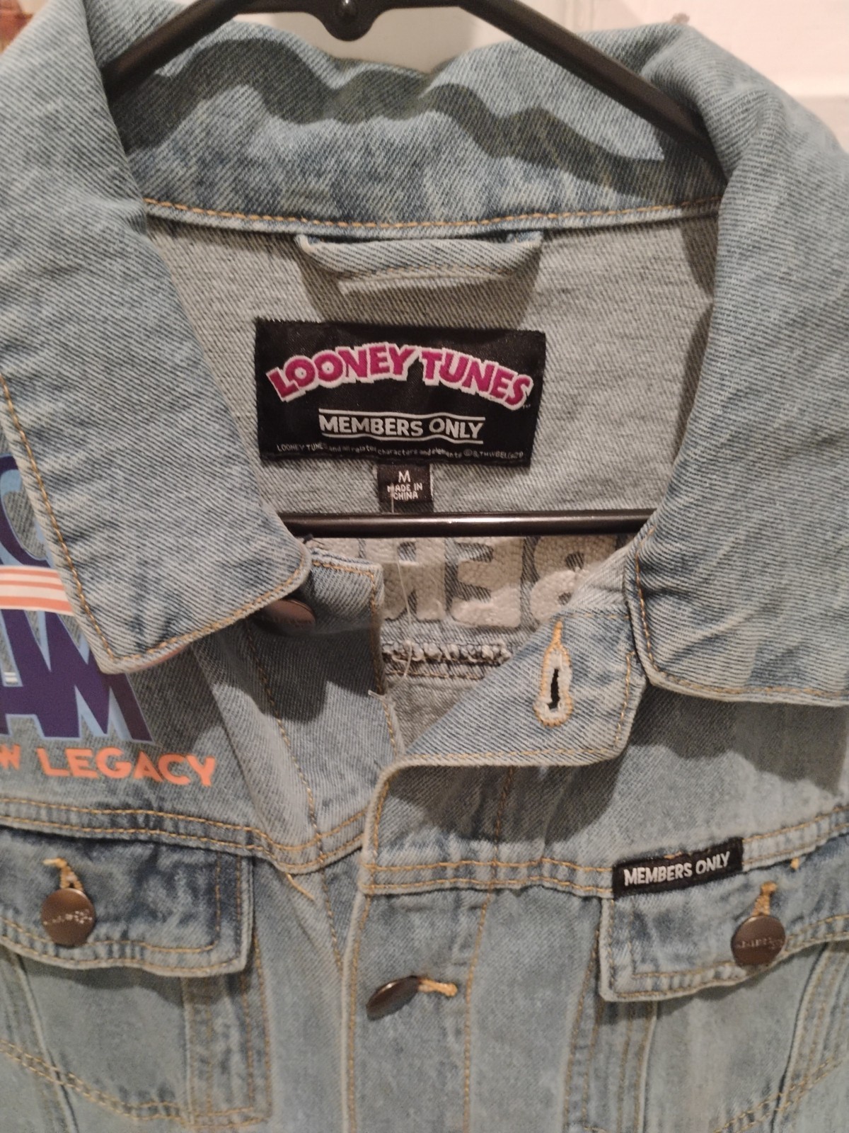 VTG Looney Tunes Denim Jacket Featuring Sylvester, Daffy, Tweety Bird Sz M Rare