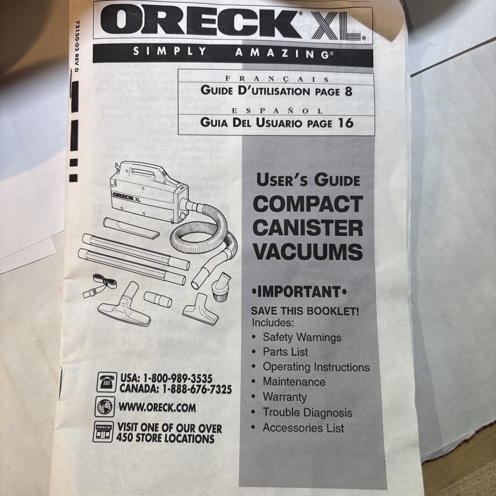 Oreck XL White Portable Canister Vacuum Cleaner w/Attachments Bags BB870-AW