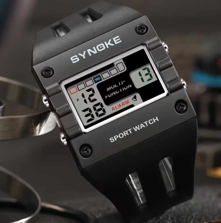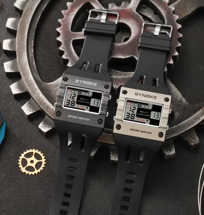 Men s Digital Quartz Watch Rectangle Design, LED Backlight, Stopwatch