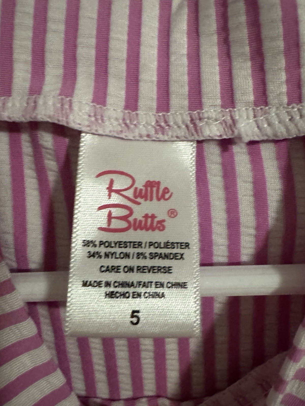 как выглядит Ruffle Butts Pink and White Stripe Seersucker Rash Guard Swim Top Girls 5 EUC фото