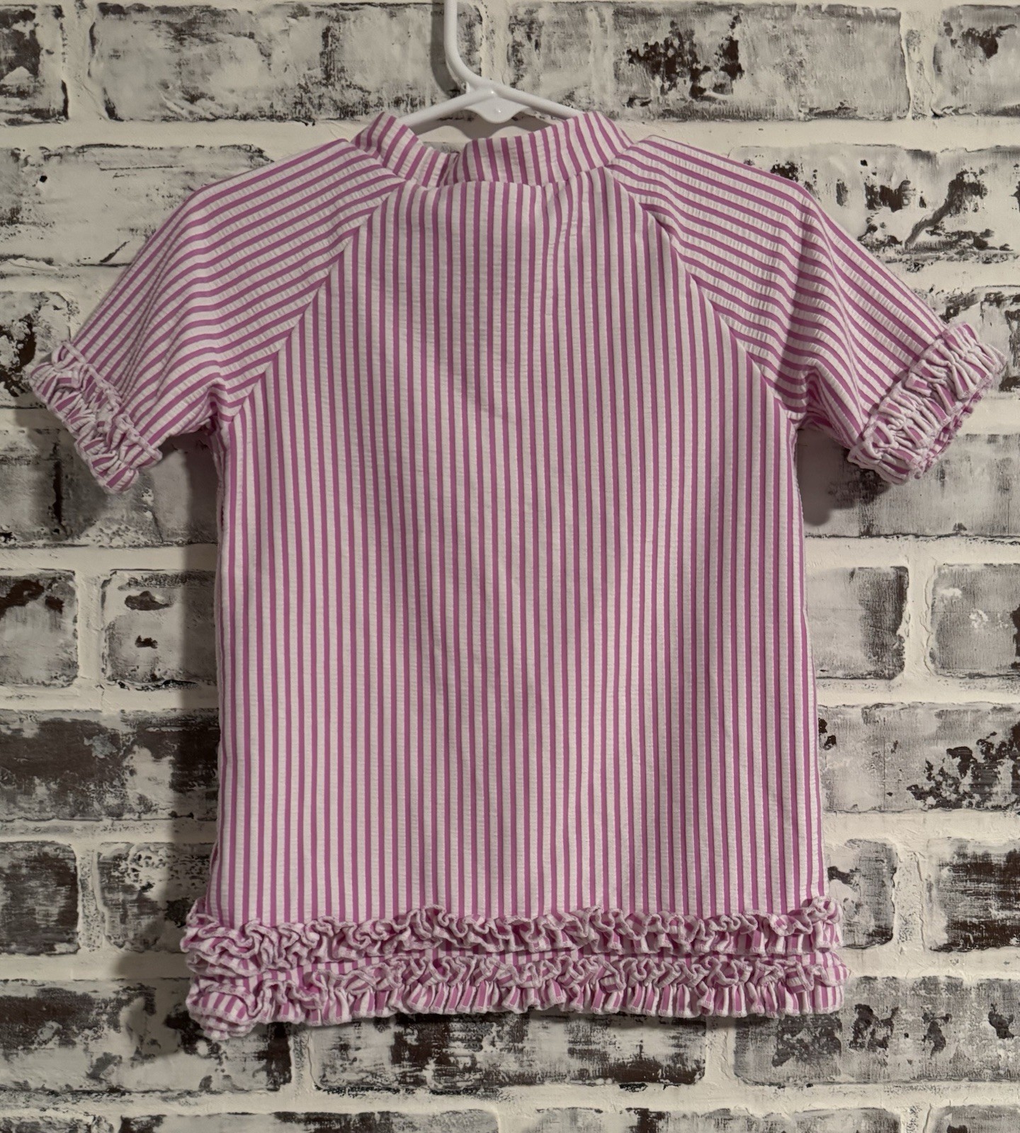 Ruffle Butts Pink and White Stripe Seersucker Rash Guard Swim Top Girls 5 EUC
