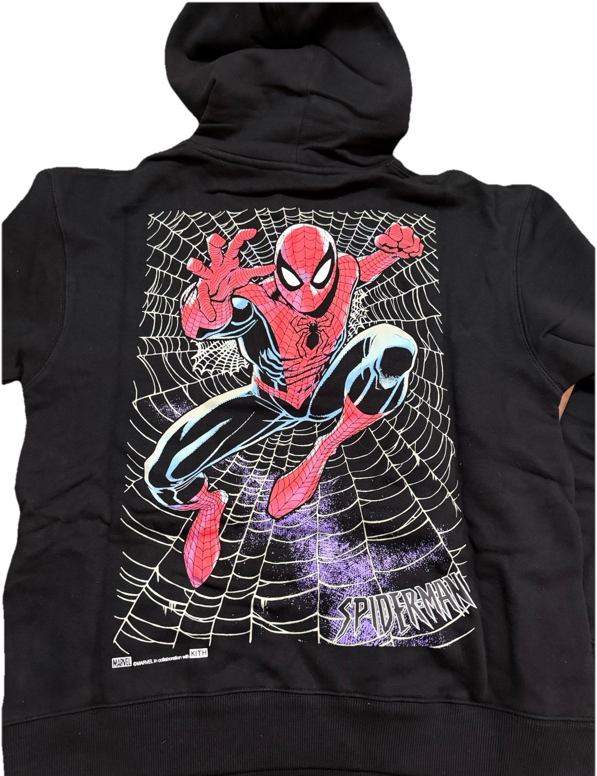 как выглядит KITH x Marvel x Spider-Man 60th Anniversary Pack Web Logo Black Hoodie Small NWT фото