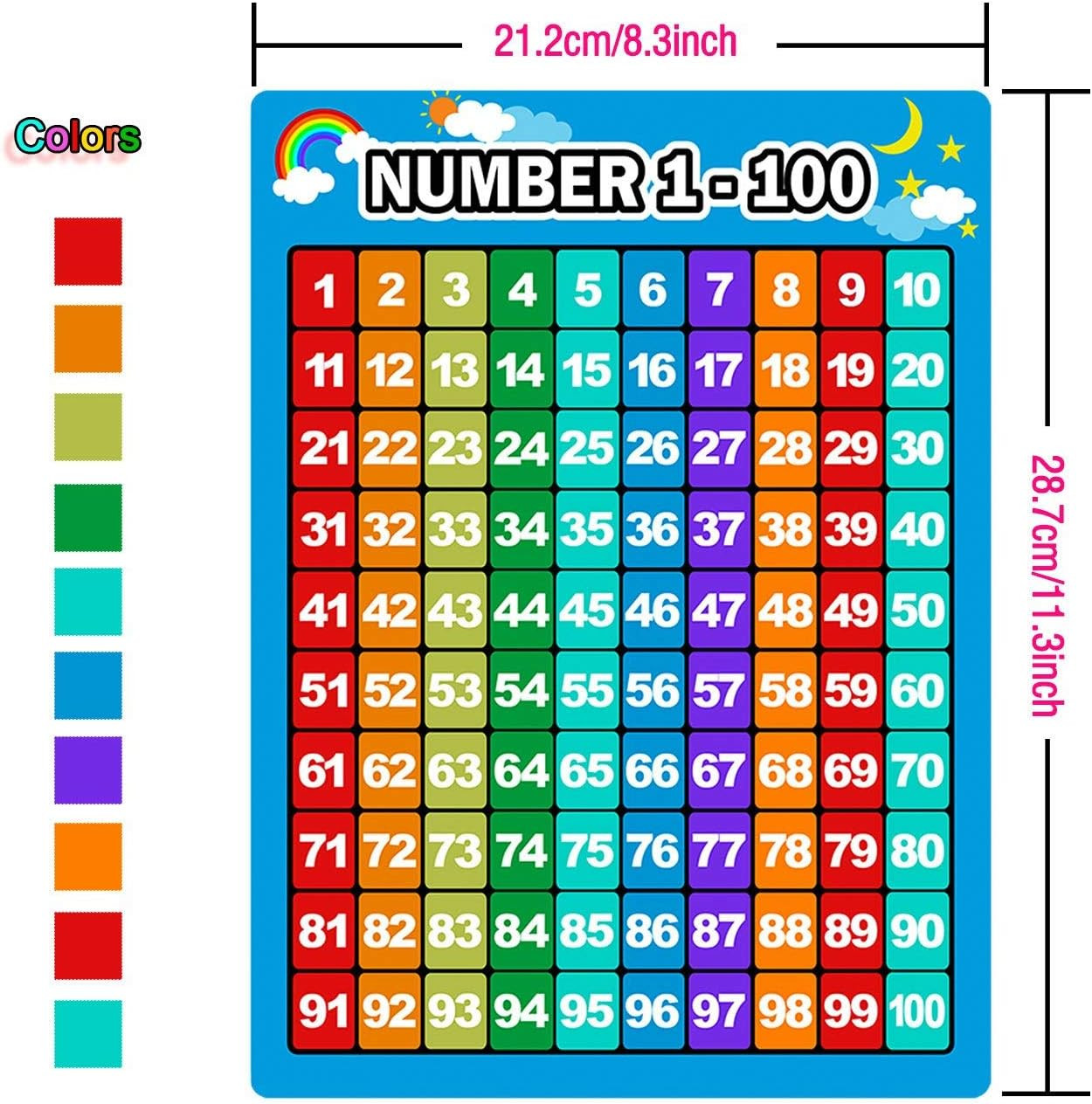 3 Pieces Number 1-100 Charts Educational Preschool Posters Learning Poster fo...