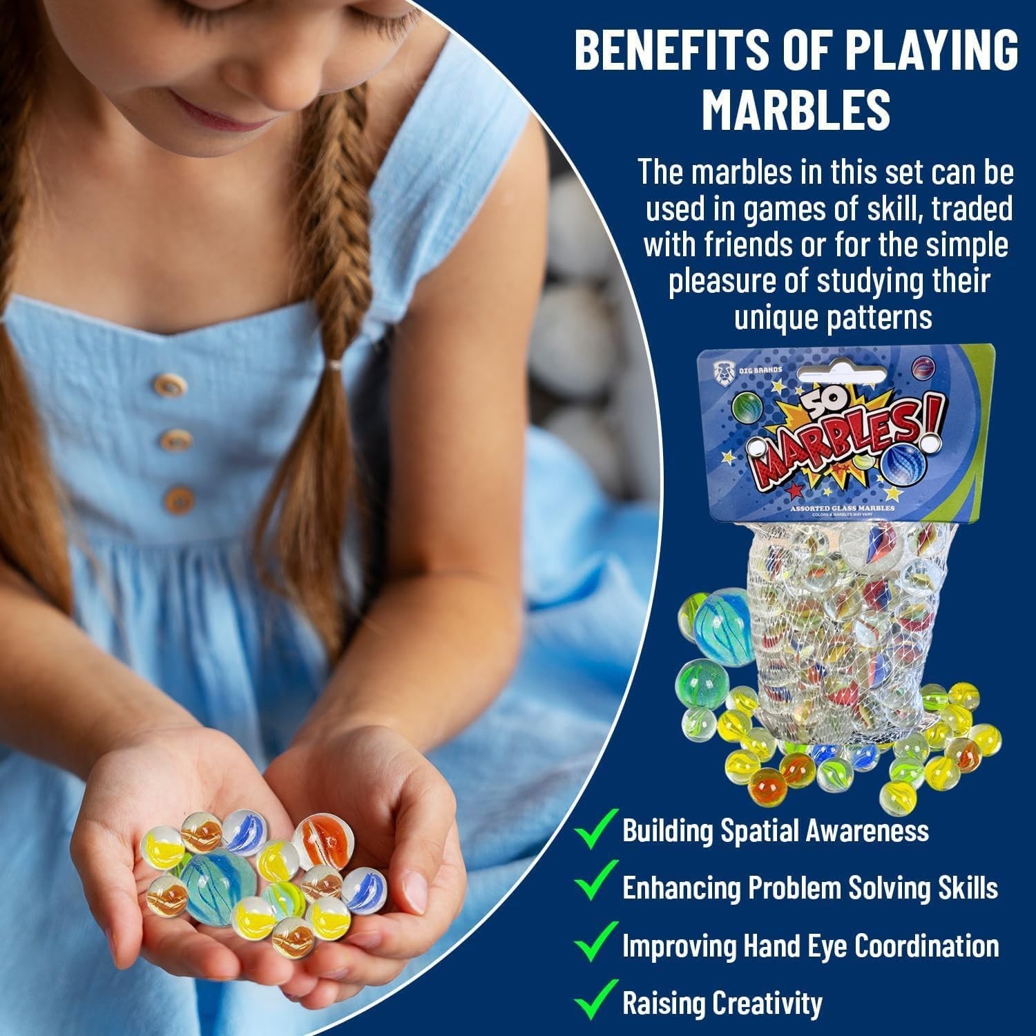 50pcs Retro Glass Marbles Set Classic Kids Game Toy Assorted Colors