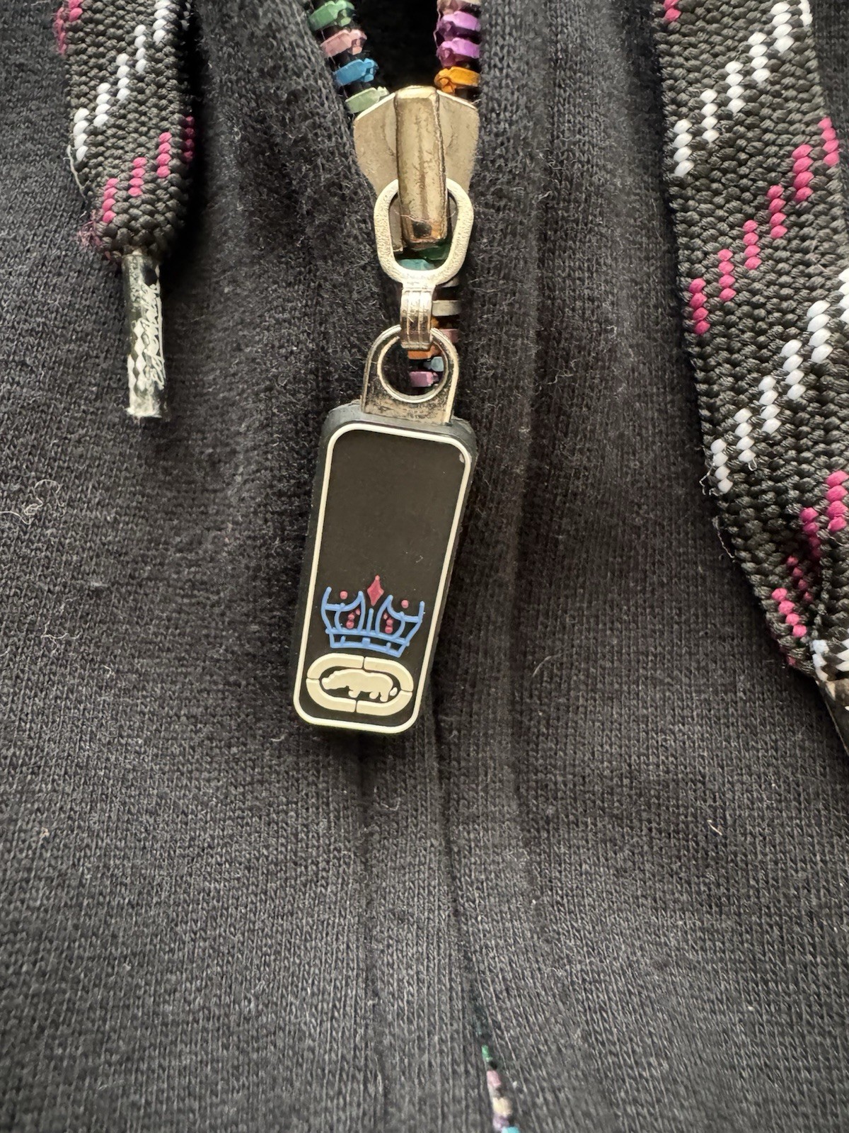 Vintage Y2K Ecko Unltd Blk Full Zip Hoodie Colorful Graphic Streetwear Mens 2XL