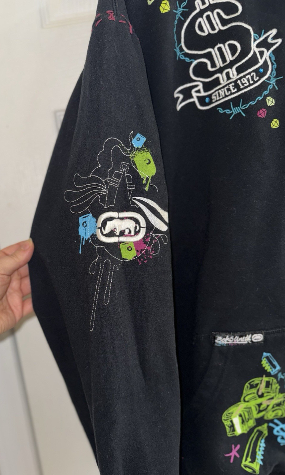 как выглядит Vintage Y2K Ecko Unltd Blk Full Zip Hoodie Colorful Graphic Streetwear Mens 2XL фото