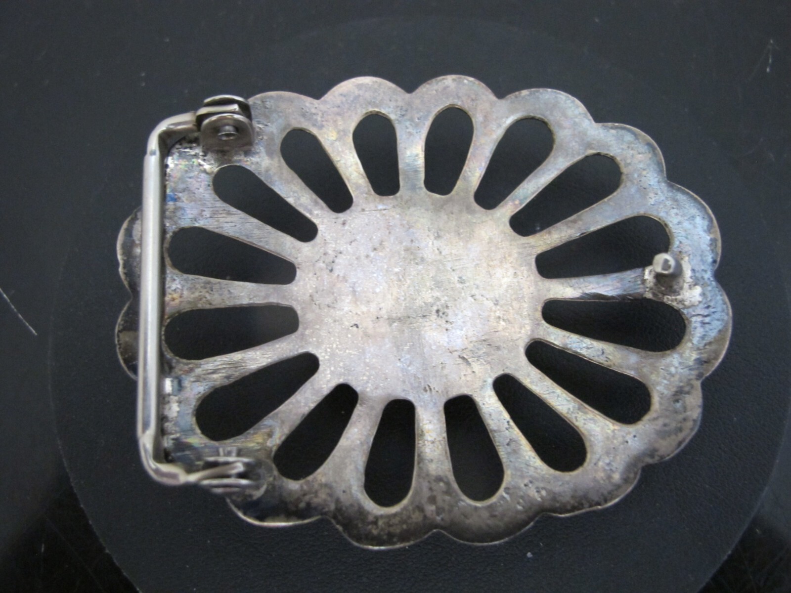 как выглядит NAVAJO Native American TURQUOISE Sterling Sand Cast Flower CONCHO Belt Buckle фото