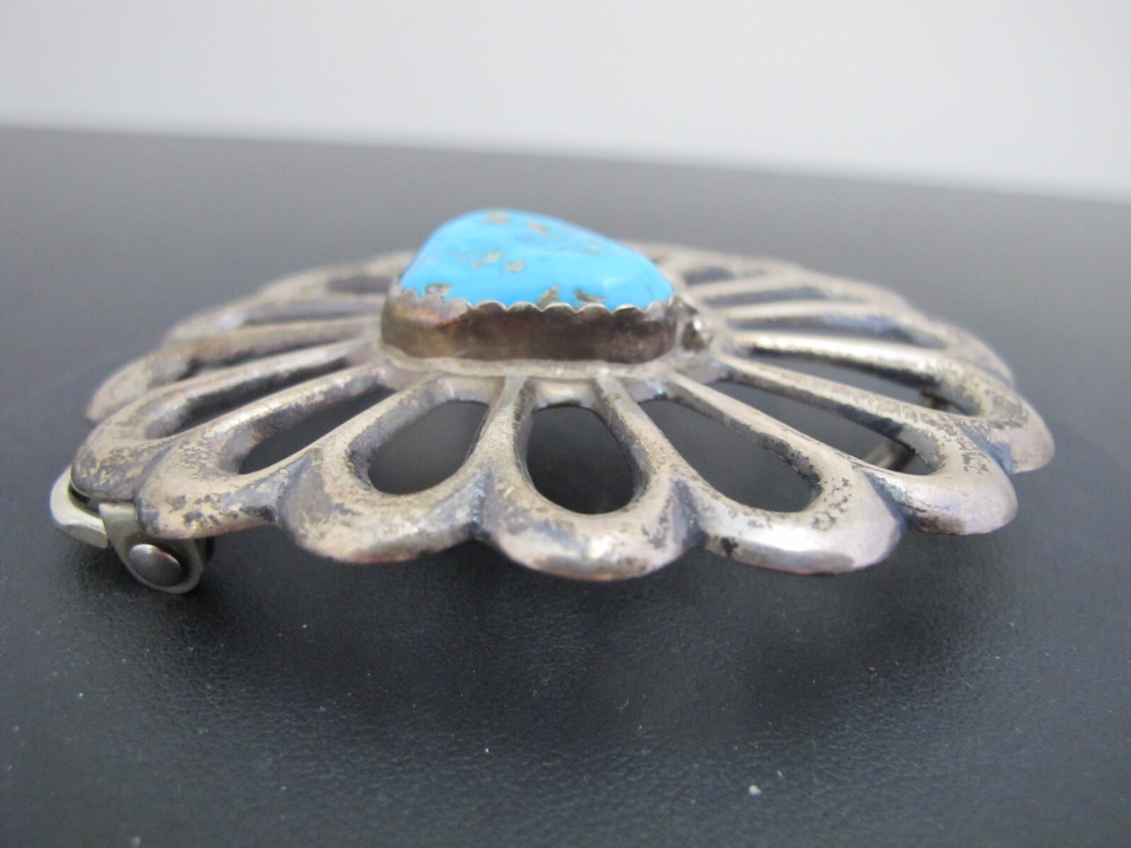 NAVAJO Native American TURQUOISE Sterling Sand Cast Flower CONCHO Belt Buckle