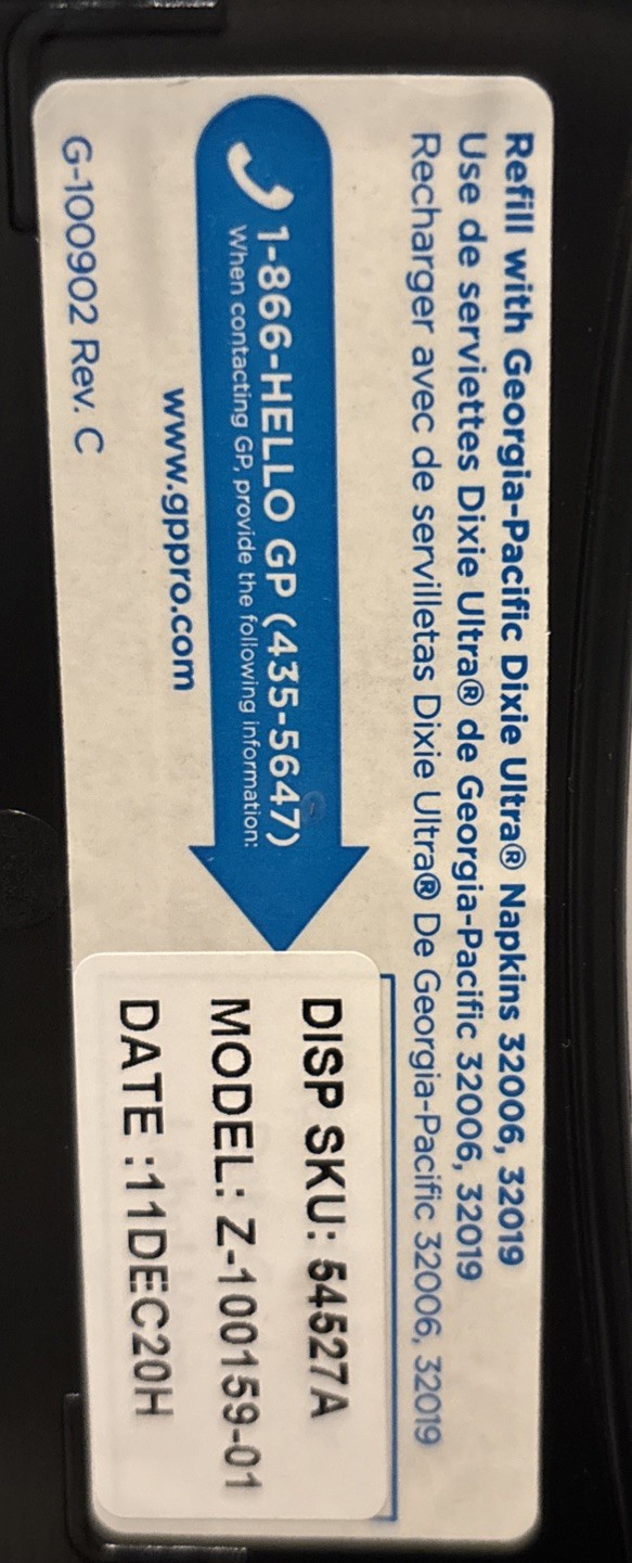 Dixie 54527A Plastic,Color Black,300,Napkin Dispenser, NEW