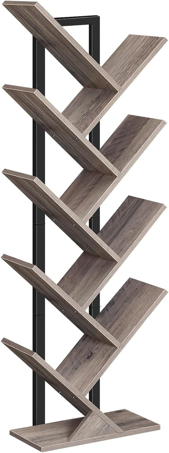Tree Bookshelf 9-Tier Bookcase Wooden Shelves Floor Standing Storage Rack