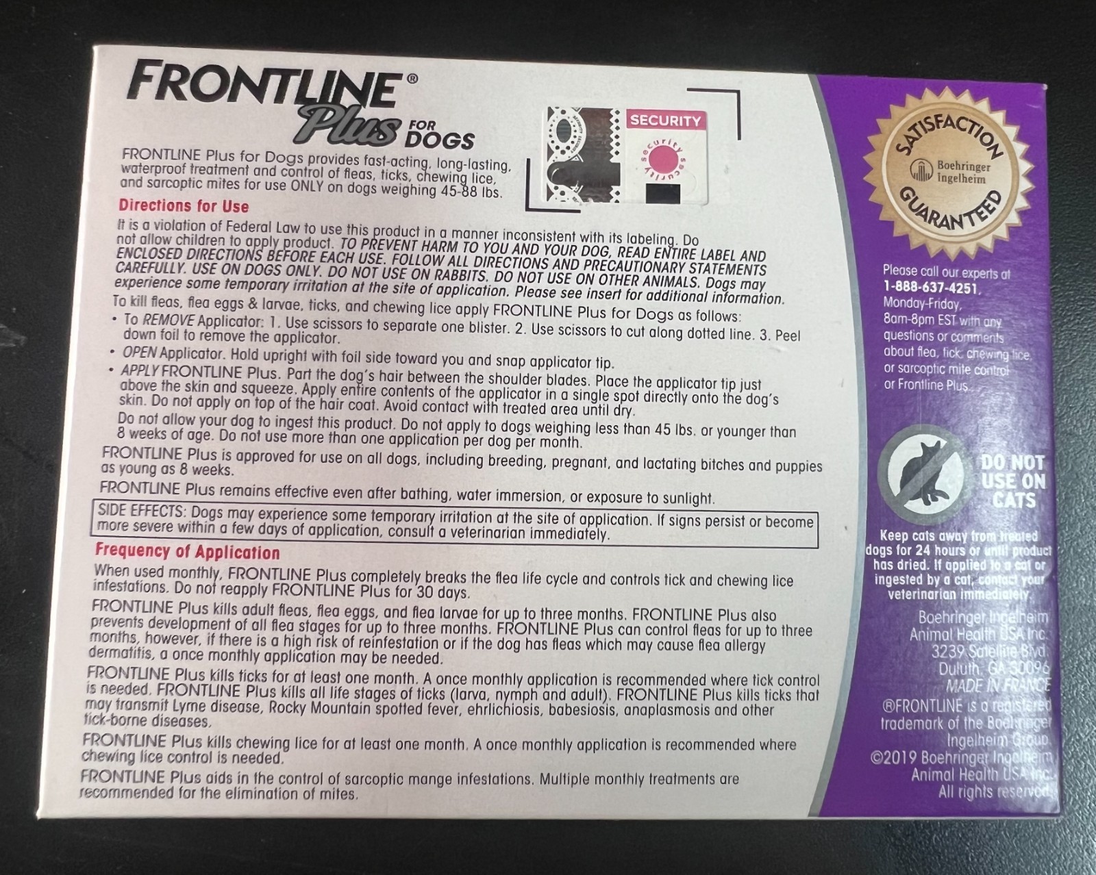 Frontline Plus Flea and Tick Protection for 45-88lb Dogs 8 Doses 2462