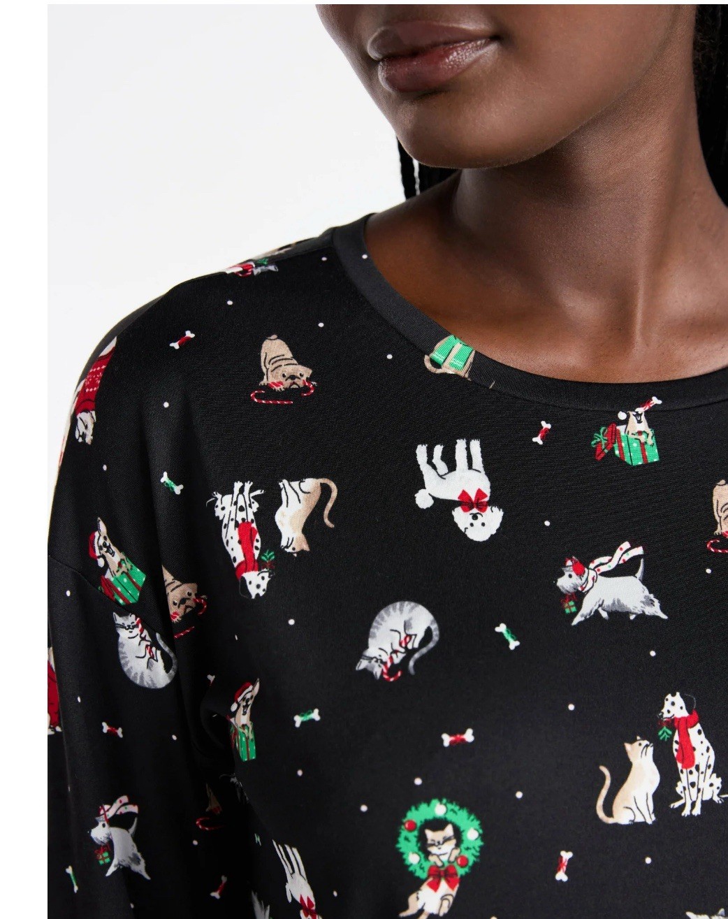 как выглядит New Joyspun 2 Piece Pajama Set Size L 2X Black Christmas Dogs Long Sleeve фото