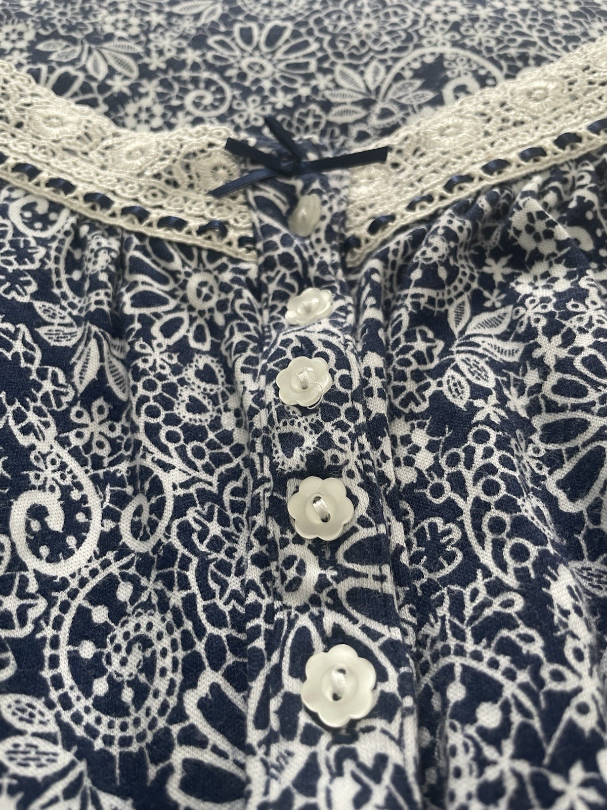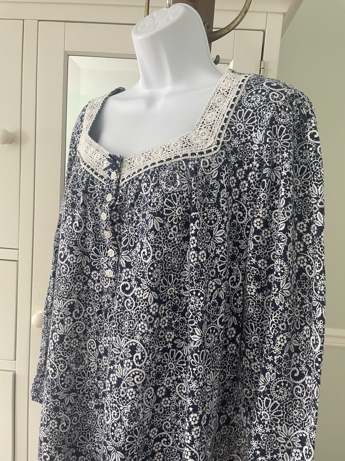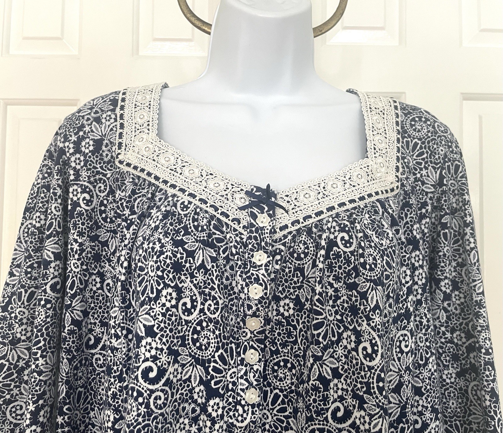 как выглядит Aria - L - Long Ballet Nightgown- 100 Cotton Knit- Navy Blue - 44" фото