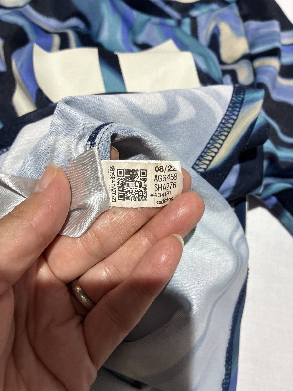 как выглядит Boys Adidas 2 Piece Blue Watercolor Swirl Top And Navy Tricot Jogger Pant 6 фото