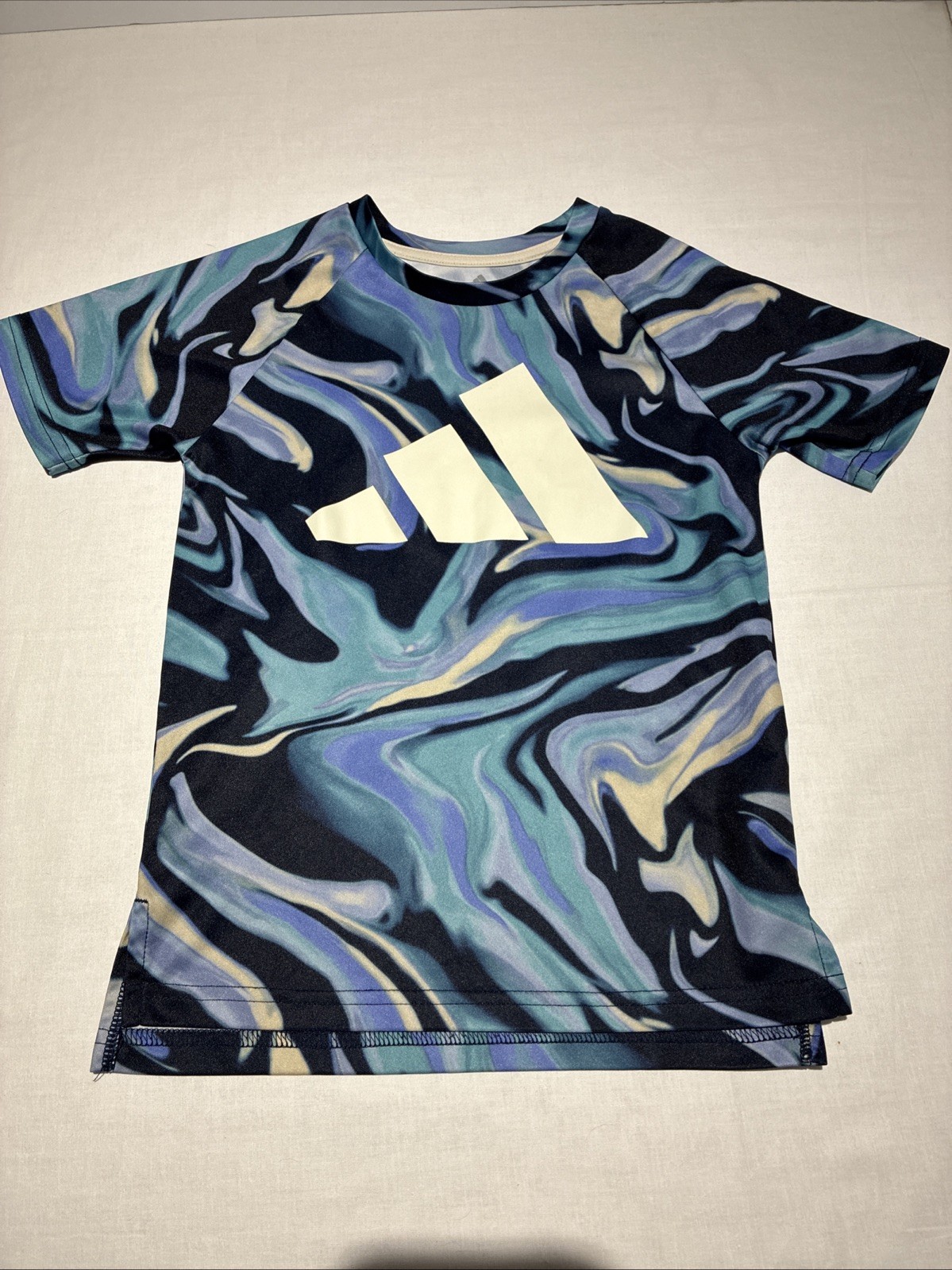 Boys Adidas 2 Piece Blue Watercolor Swirl Top And Navy Tricot Jogger Pant 6