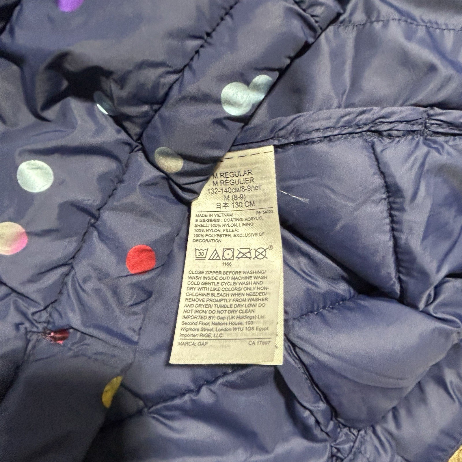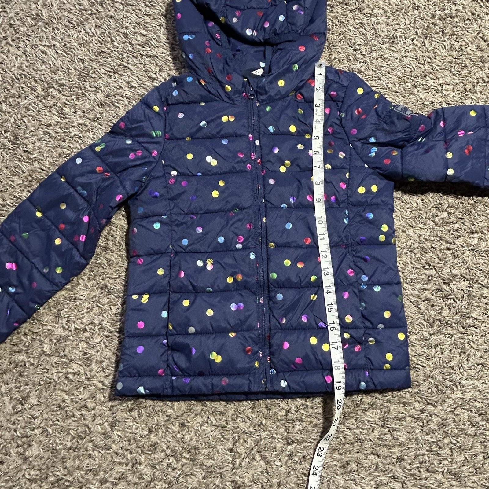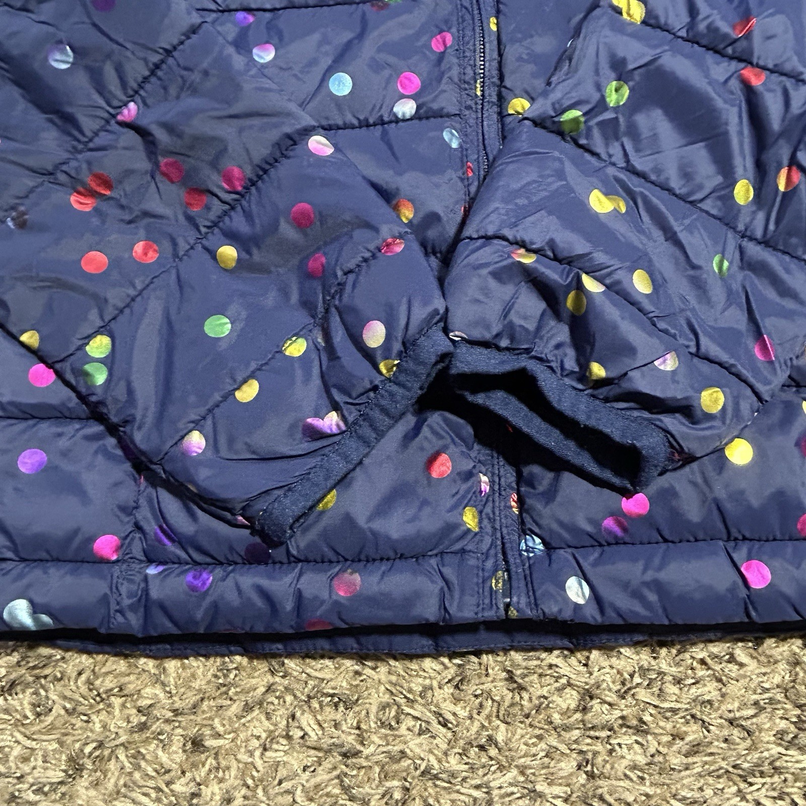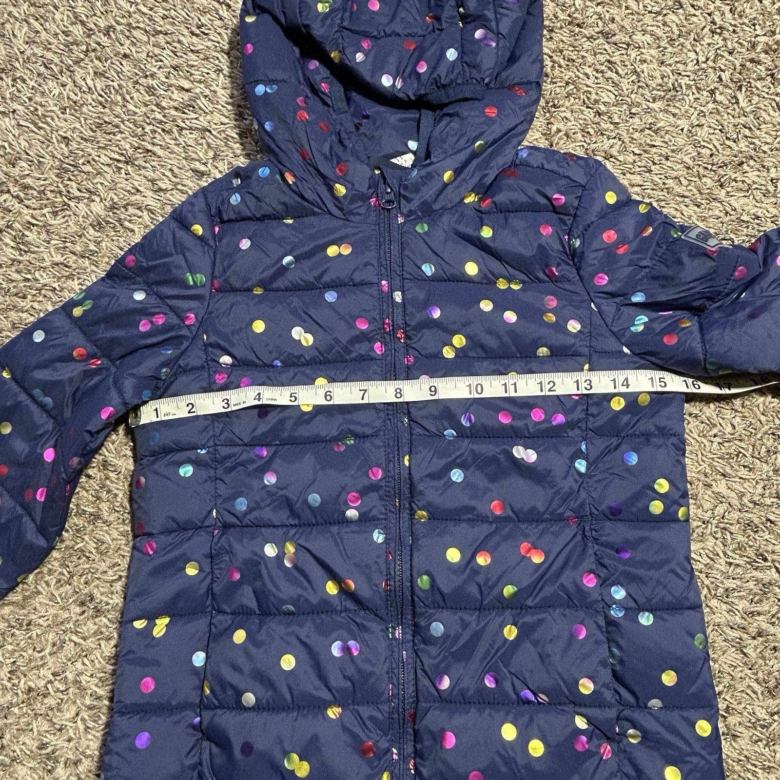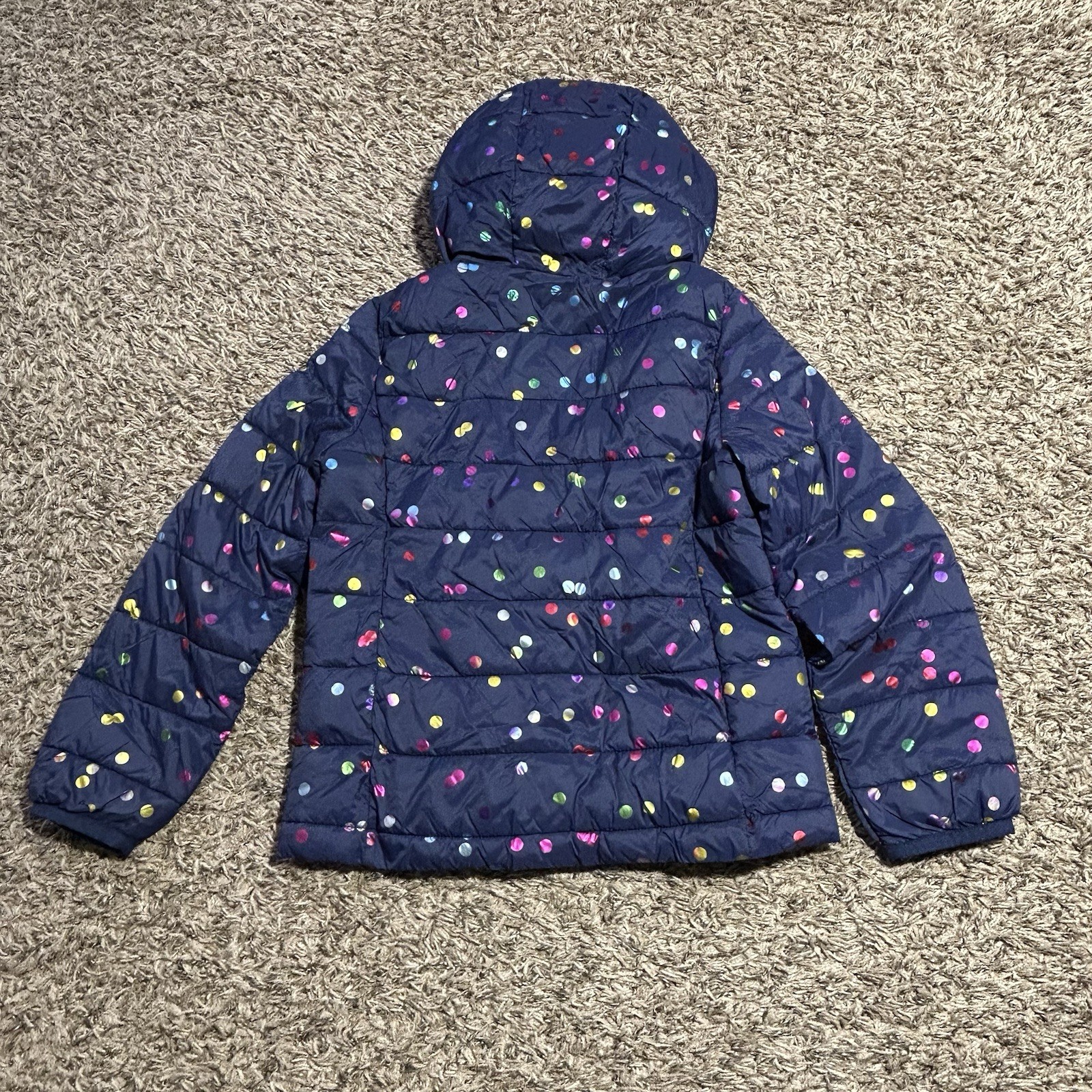 как выглядит Gap Kids Girls Lightweight Puffer Quilted Hooded Jacket Navy Polka Dot Sz Med M фото