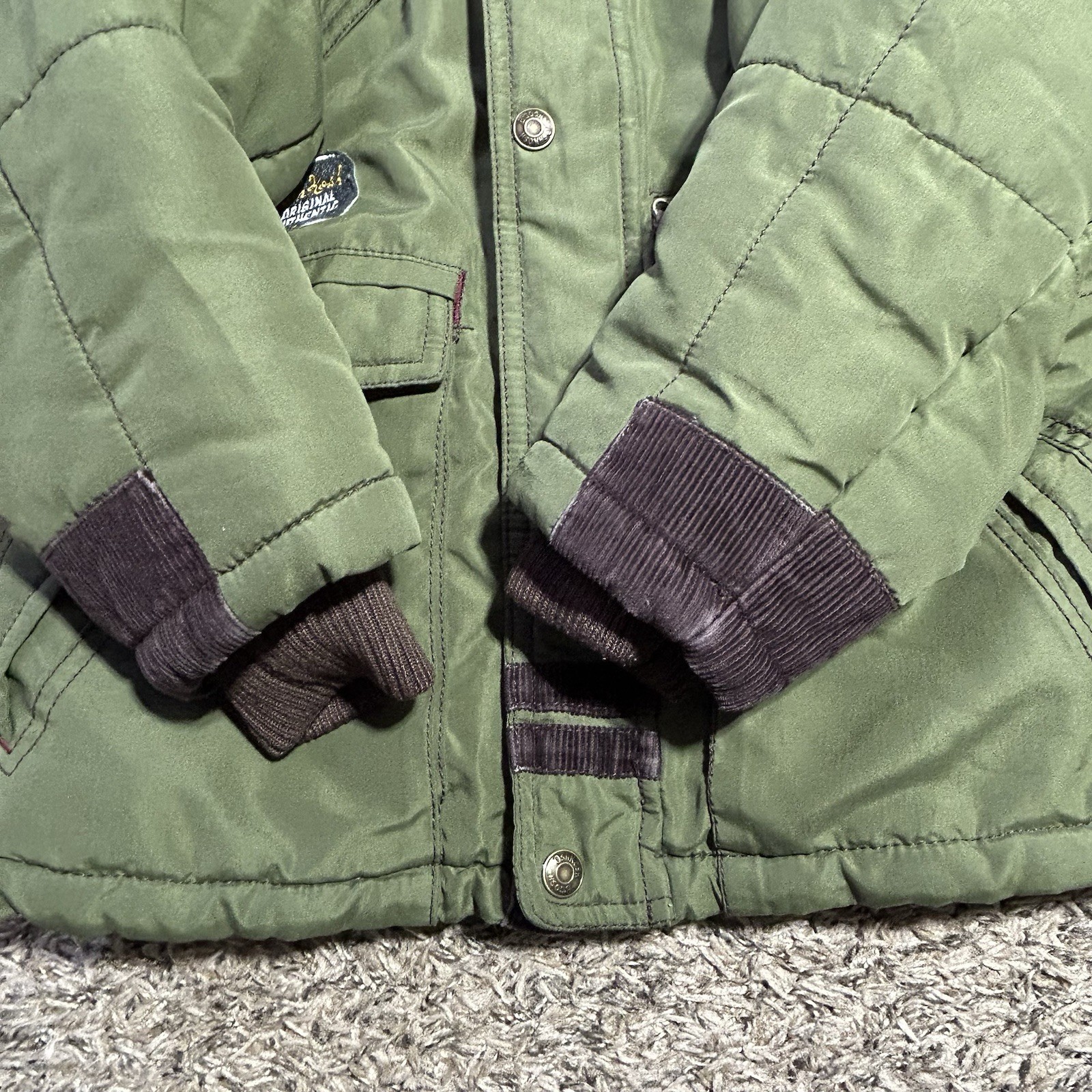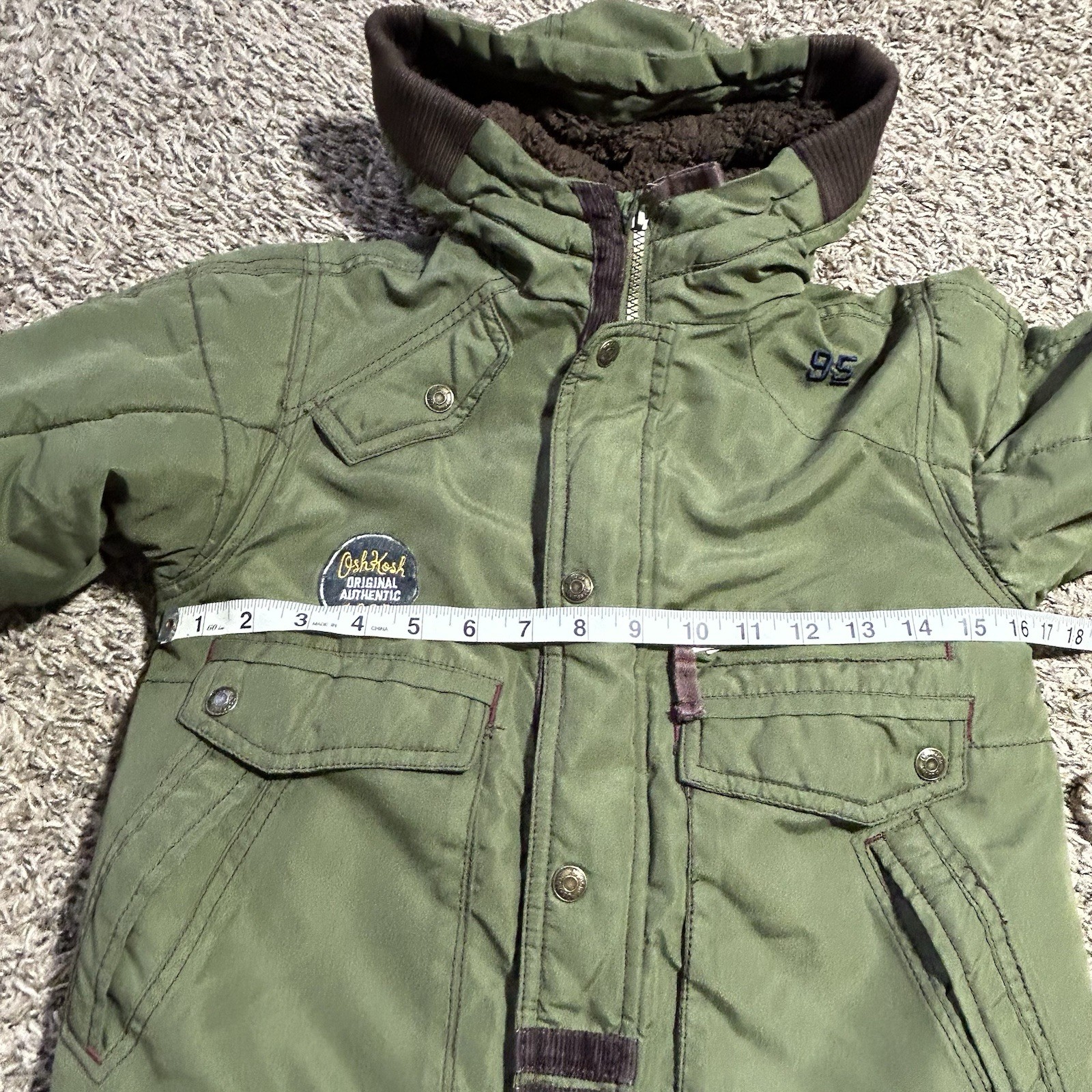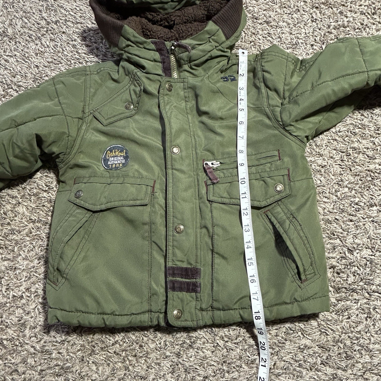 как выглядит OshKosh Bgosh Boys Heavyweight Sherpa Lined Green Hood Winter Jacket Sz 6 US фото