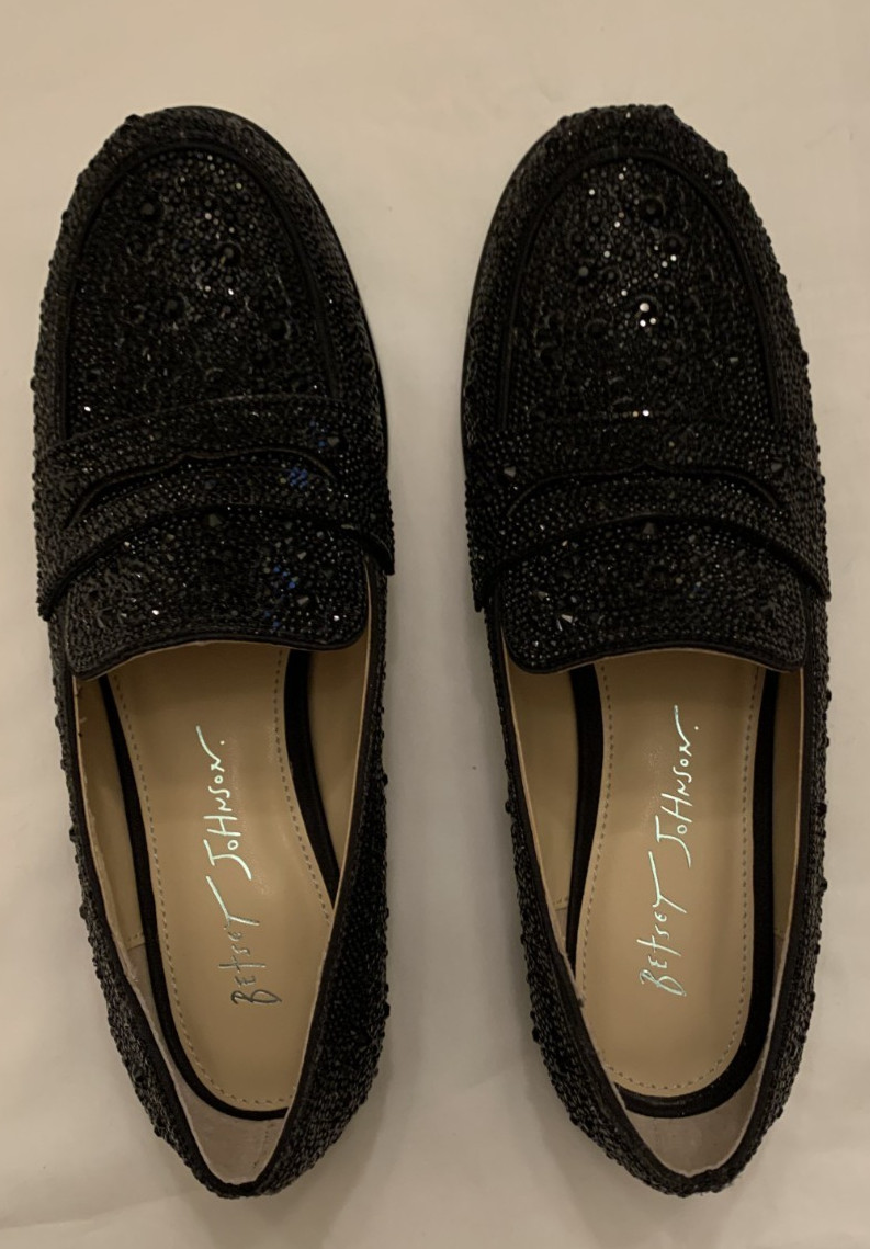 Betsey Johnson Women's Aron Rhinestone Loafer in Black Size 7.5