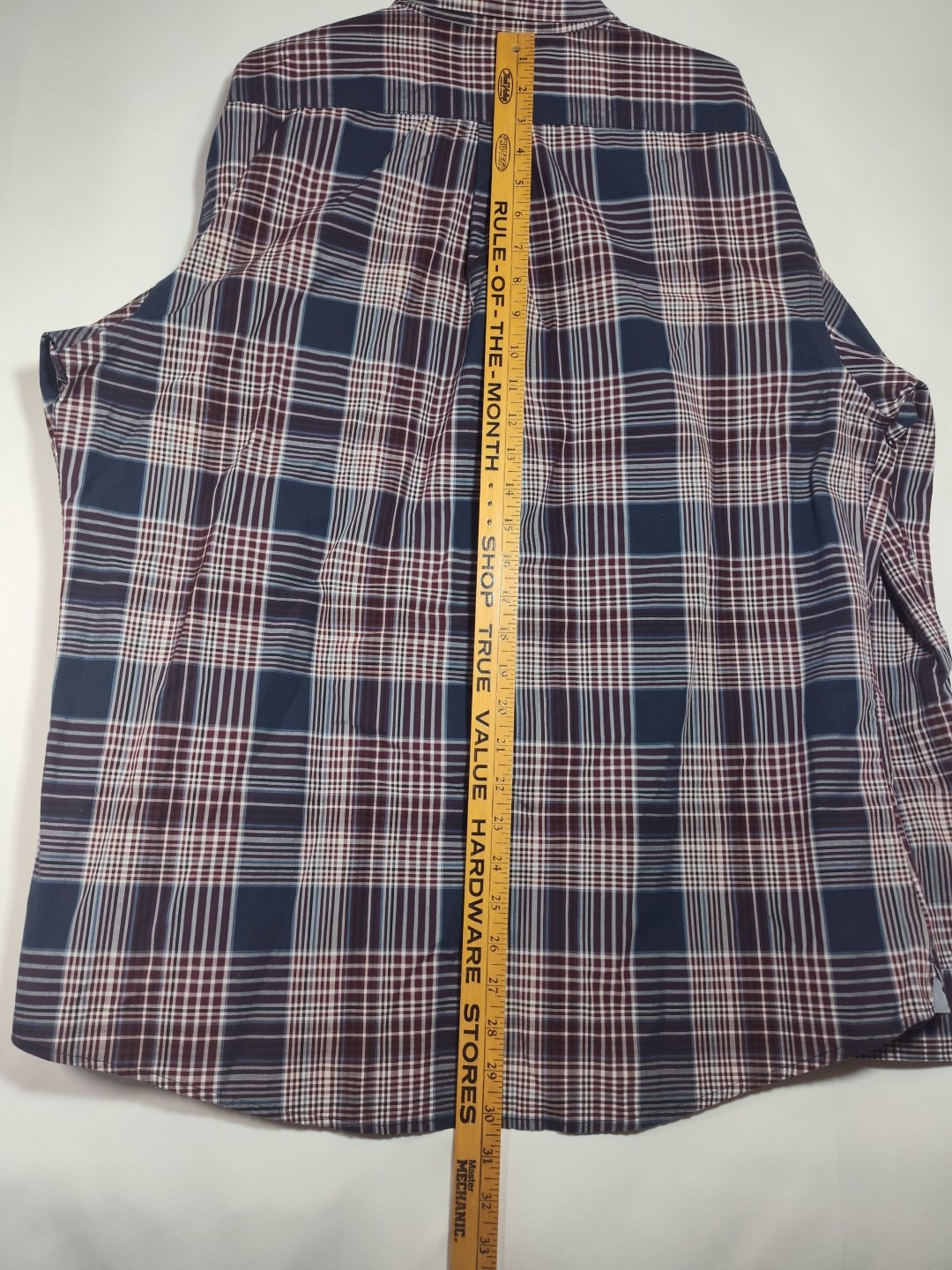 как выглядит VAN HEUSEN Originals Mens Slim Fit Navy Maroon Plaid Dress Shirt XL 17-17 1/2 фото