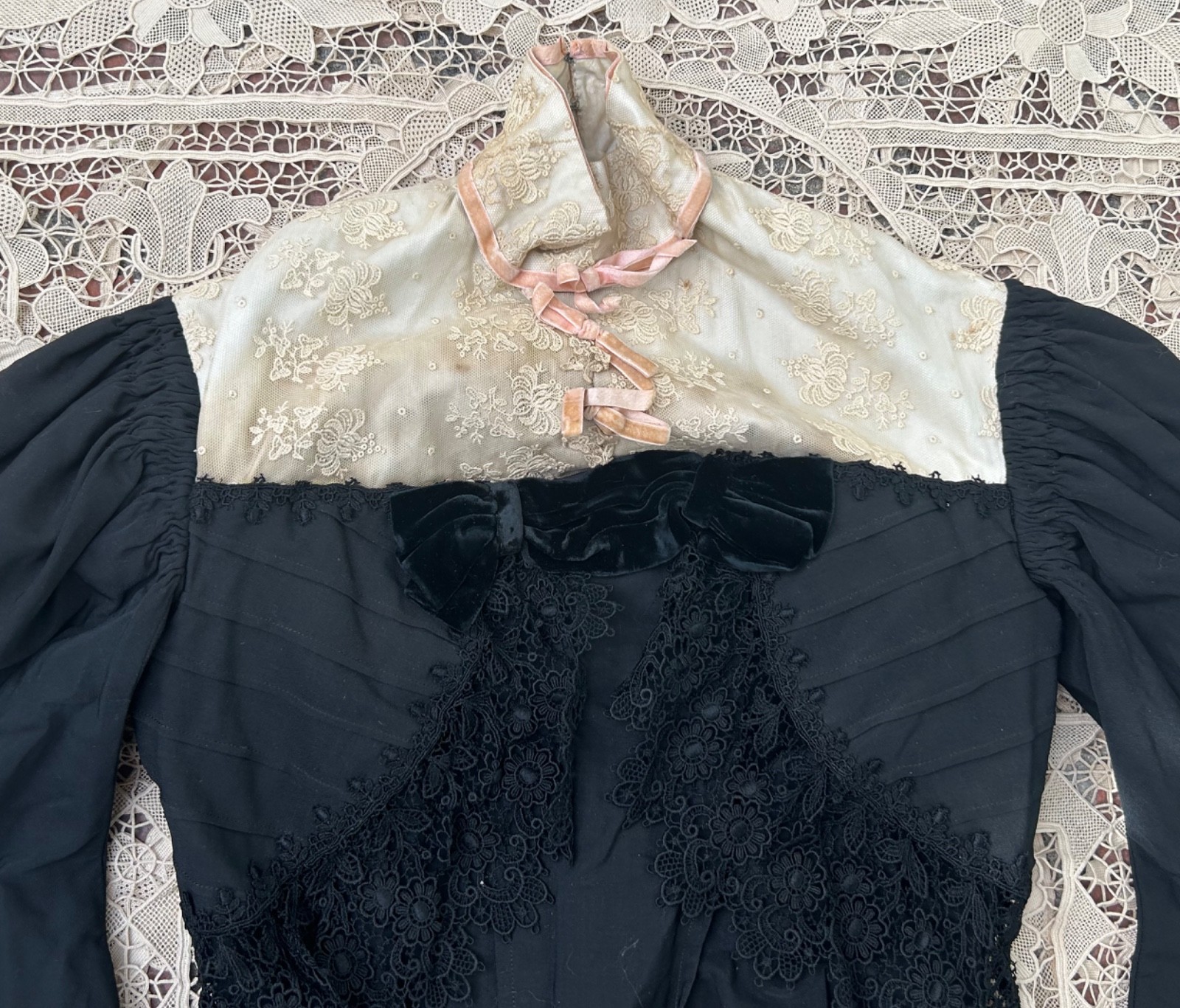 Antique Edwardian Black Lace Bodice Dress PRISTINE XXS Victorian Shirt Waist