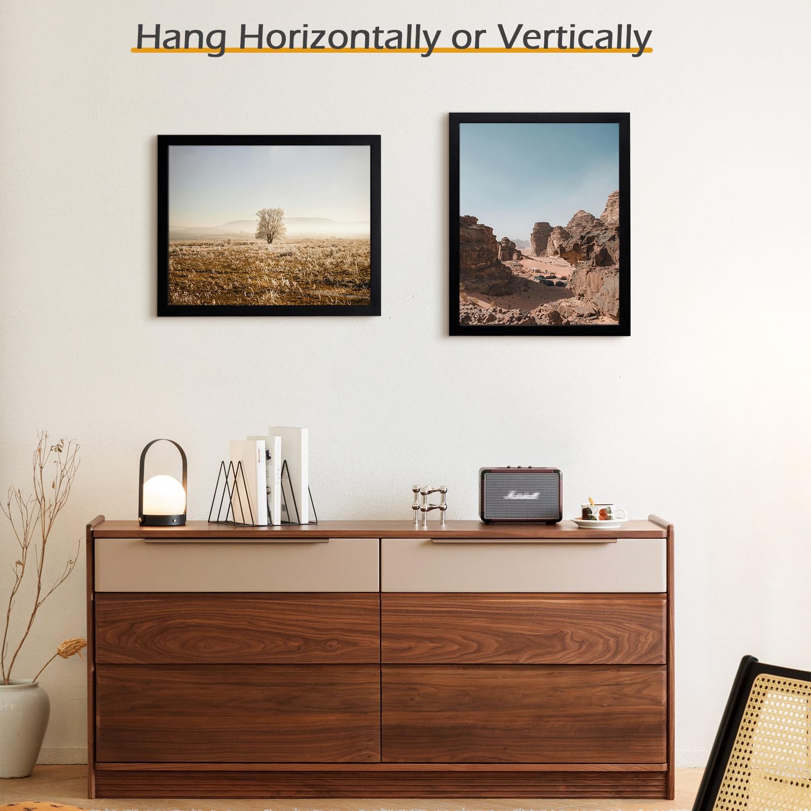 Golden State Art 16x20 Black Picture Frame Solid Wood Tempered Glass Wall Displa