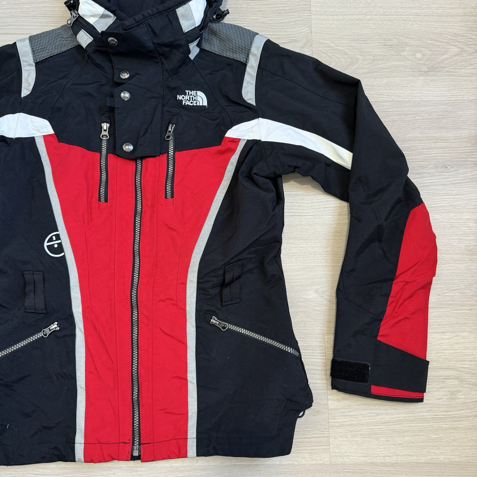 как выглядит VTG North Face Steep Tech Jacket Womens Small Red Black White Belted Ski 90s EUC фото