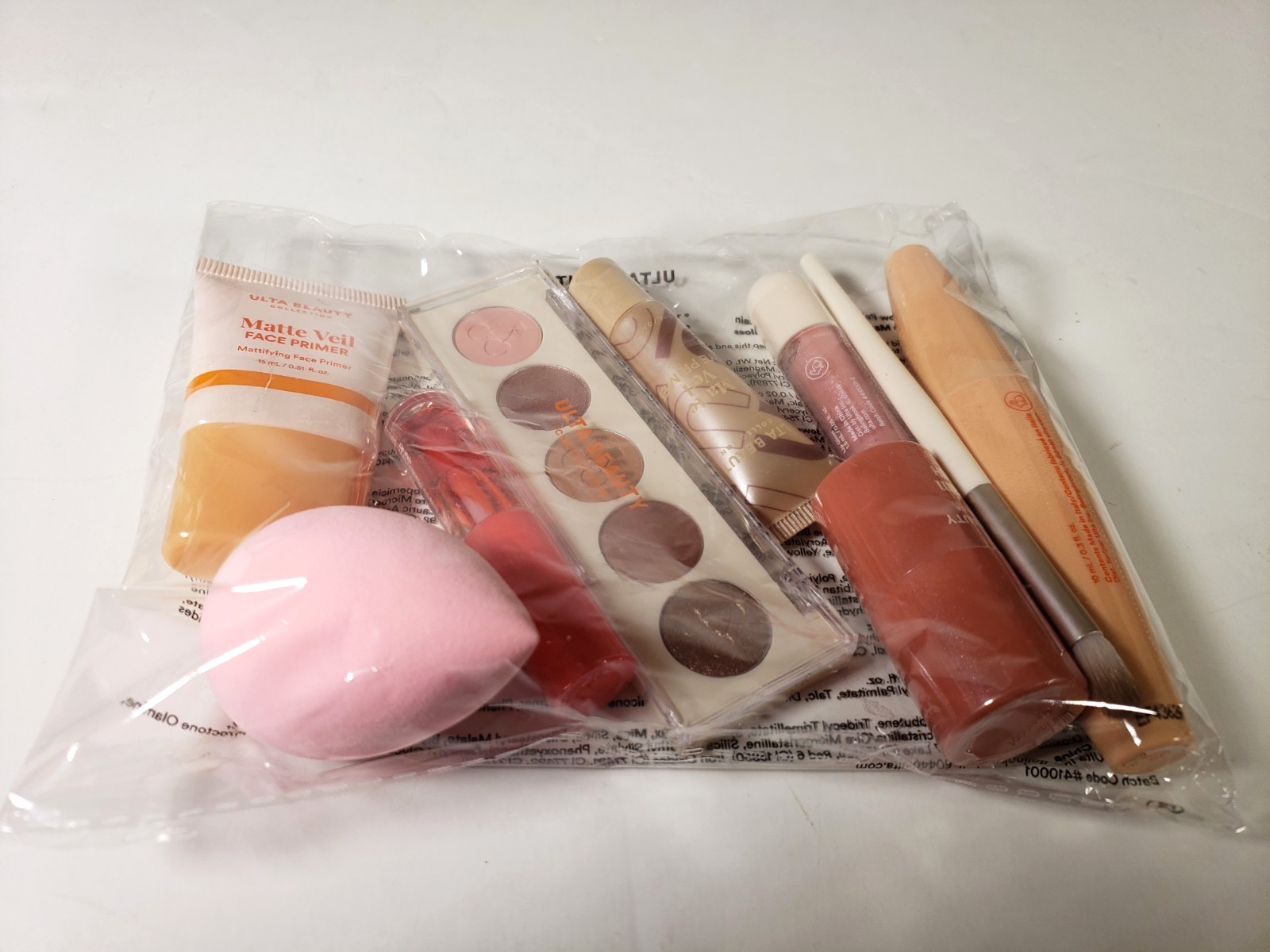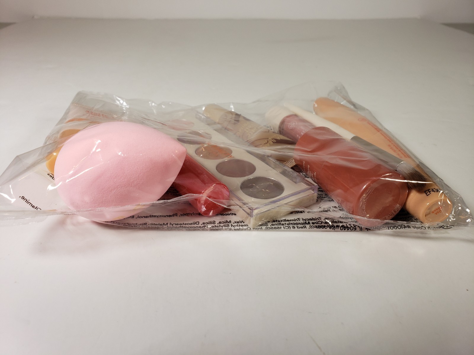 Set Includes: Blush, Brush, Face Primer, Lip Gloss, Lip Stain, Sponge, Eye primer, Eye Shadow Palette, Curled Up Mascara
