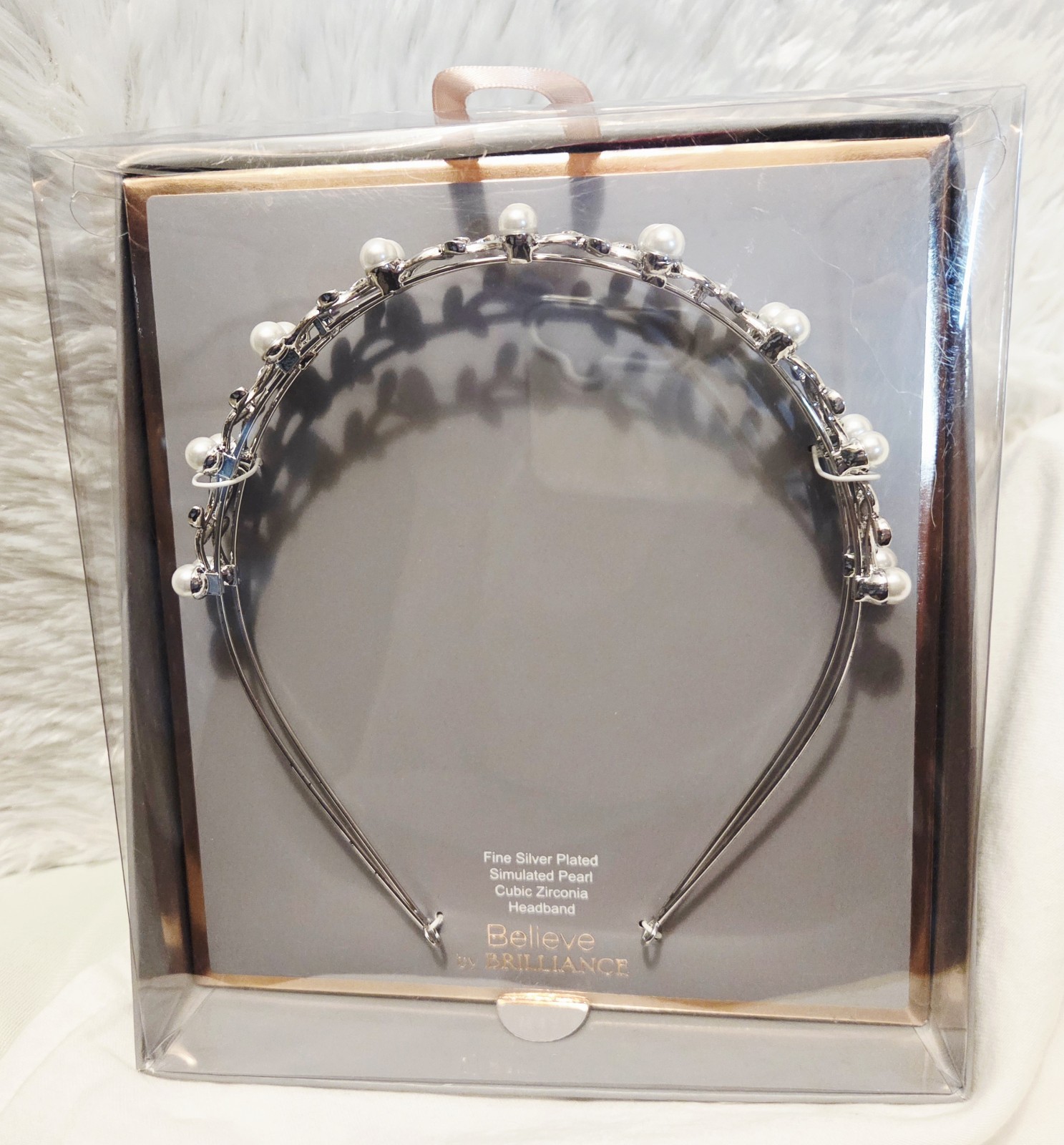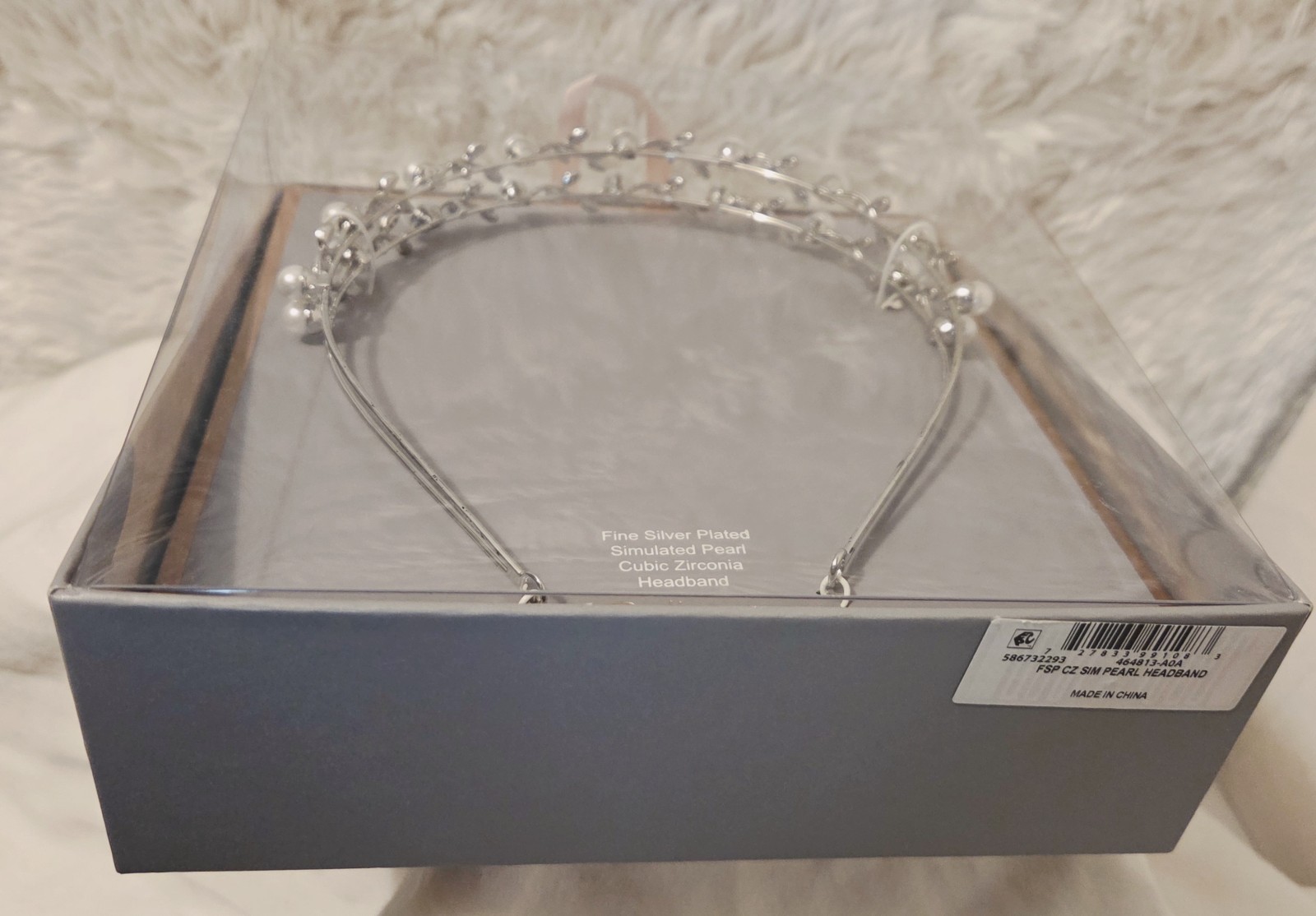 как выглядит Two Strand Silver Pearl Cubic Zirconia Tiara фото