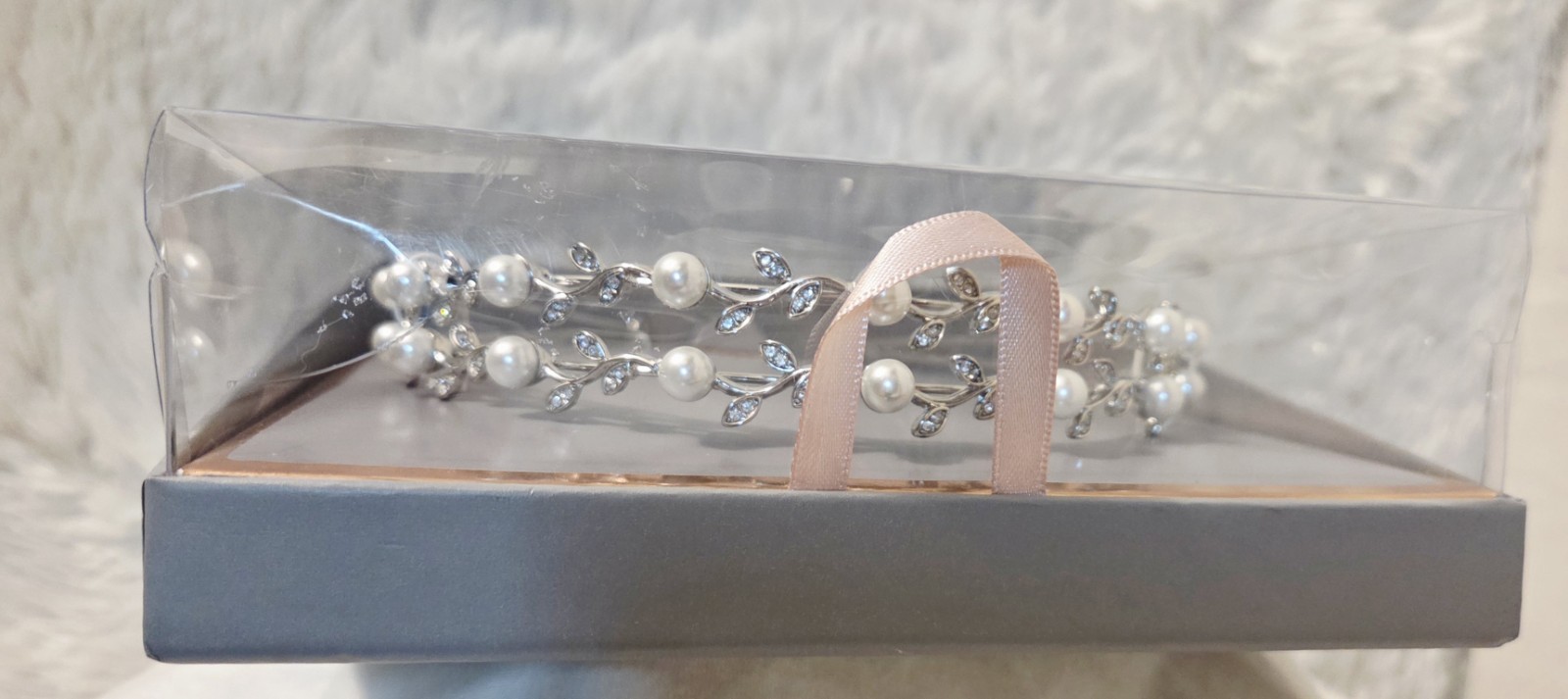 Two Strand Silver Pearl Cubic Zirconia Tiara