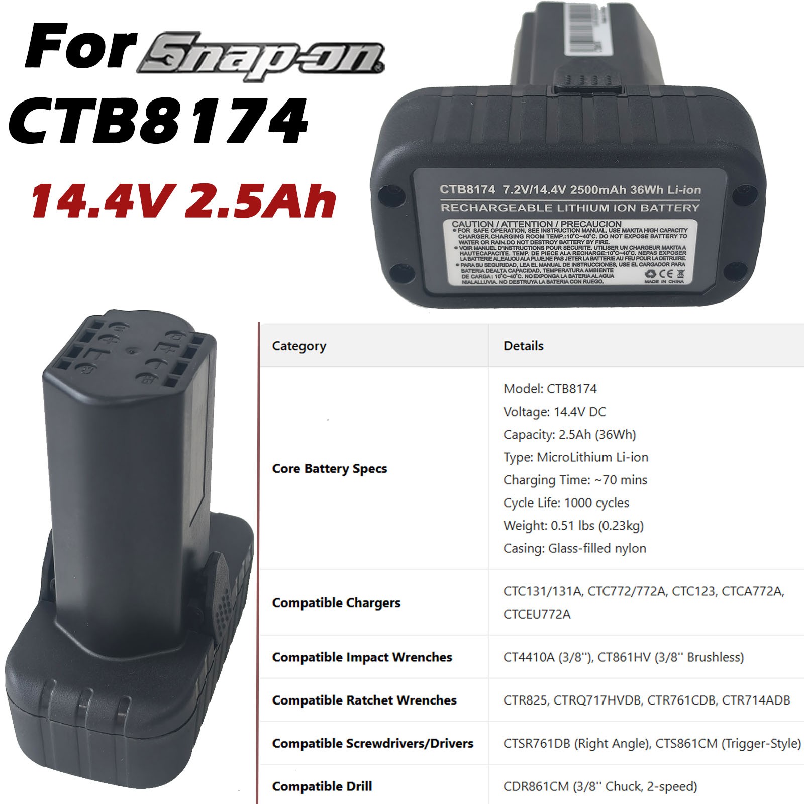 2 Pack Battery For Snap-on 14.4V Tools CTB8174 CTB8172 CT861DB CTC722 CT825DB US