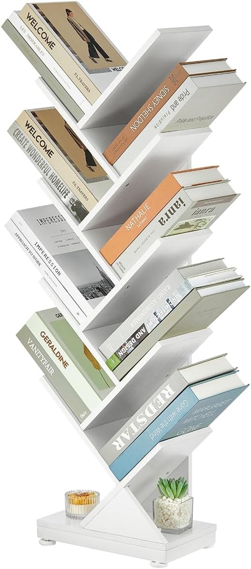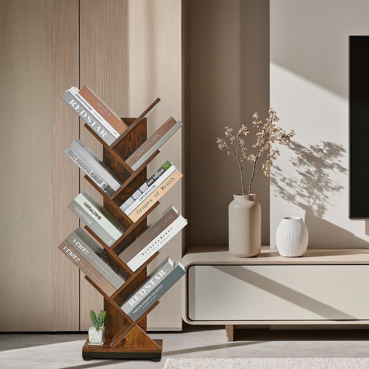9 Tier Tree Bookshelf 9 Shelf Floor Standing Bookcase Display CDs/Magazine/Books