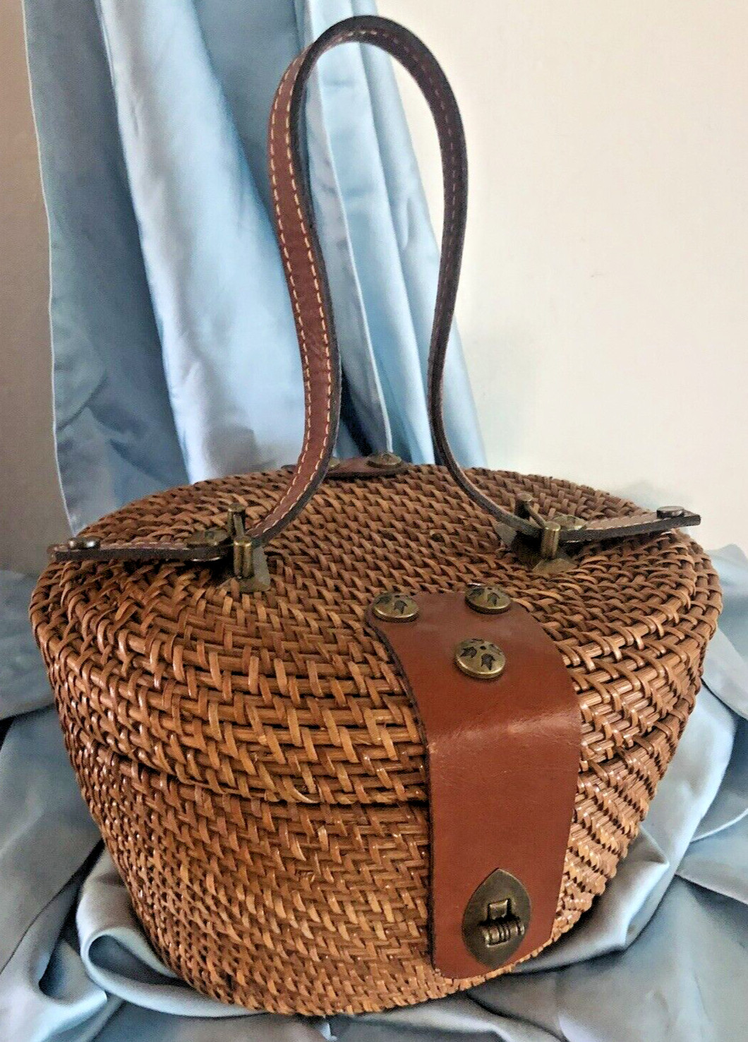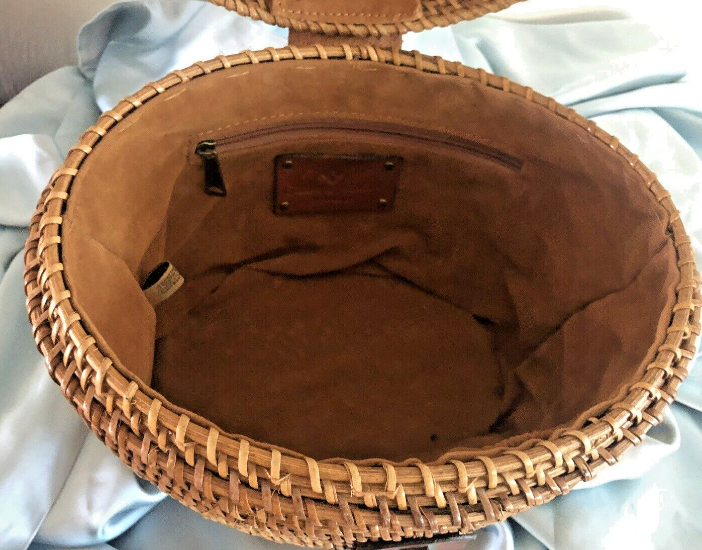 Patricia Nash Handbag Rattan Nantucket Weave Brown Leather Accents Strap