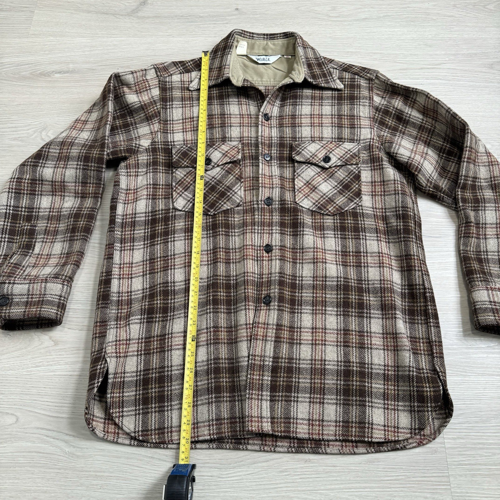 Vintage 80s Woolrich Plaid Flannel Button Shirt Jacket Wool Blend Shacket L TAN