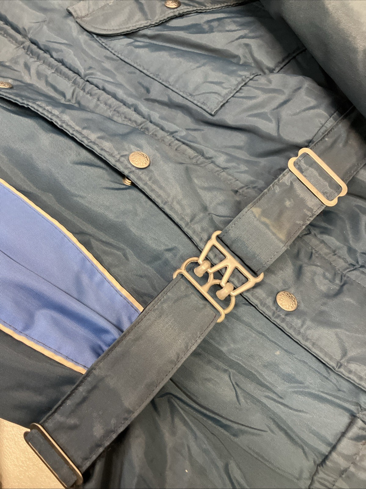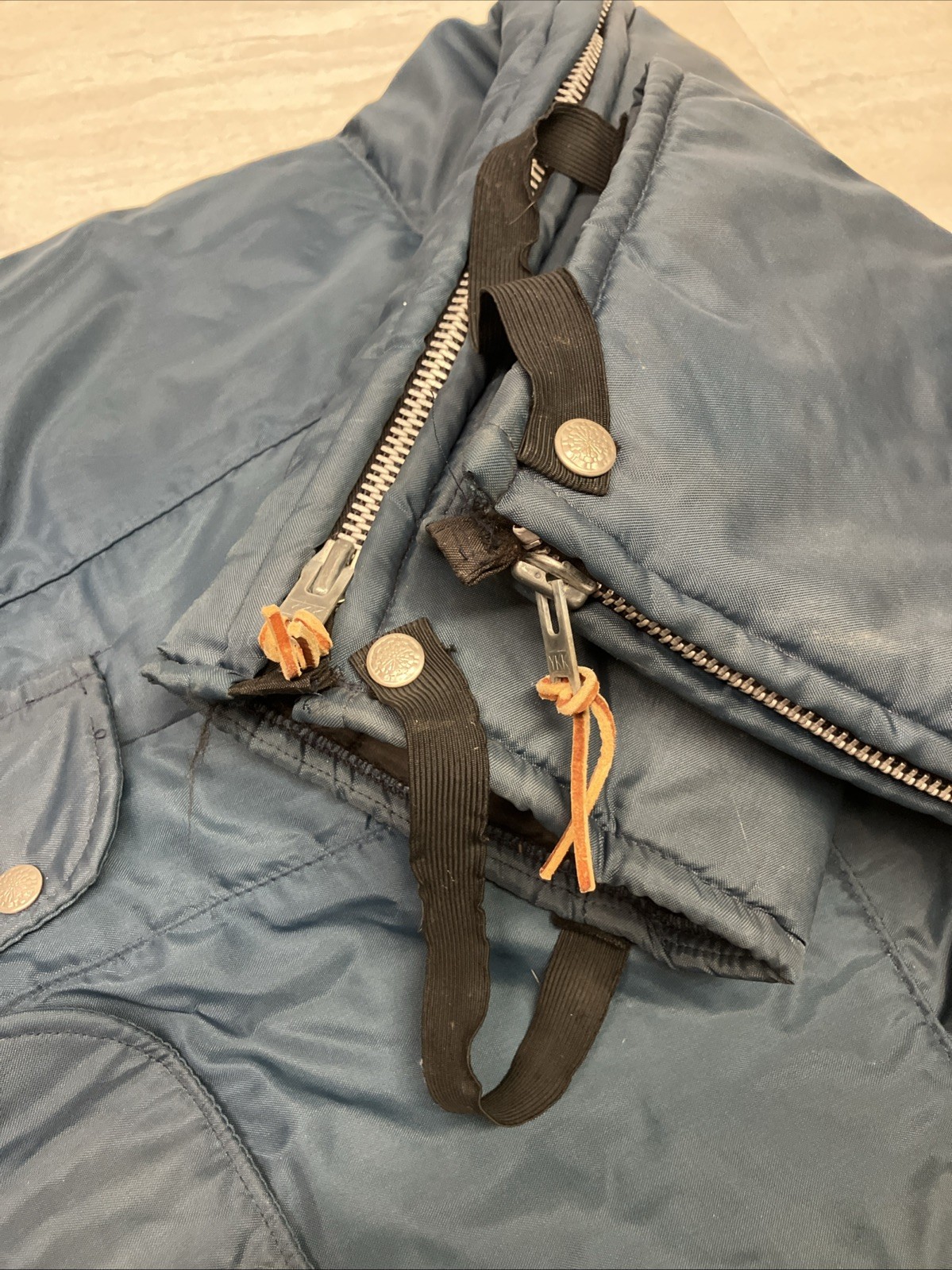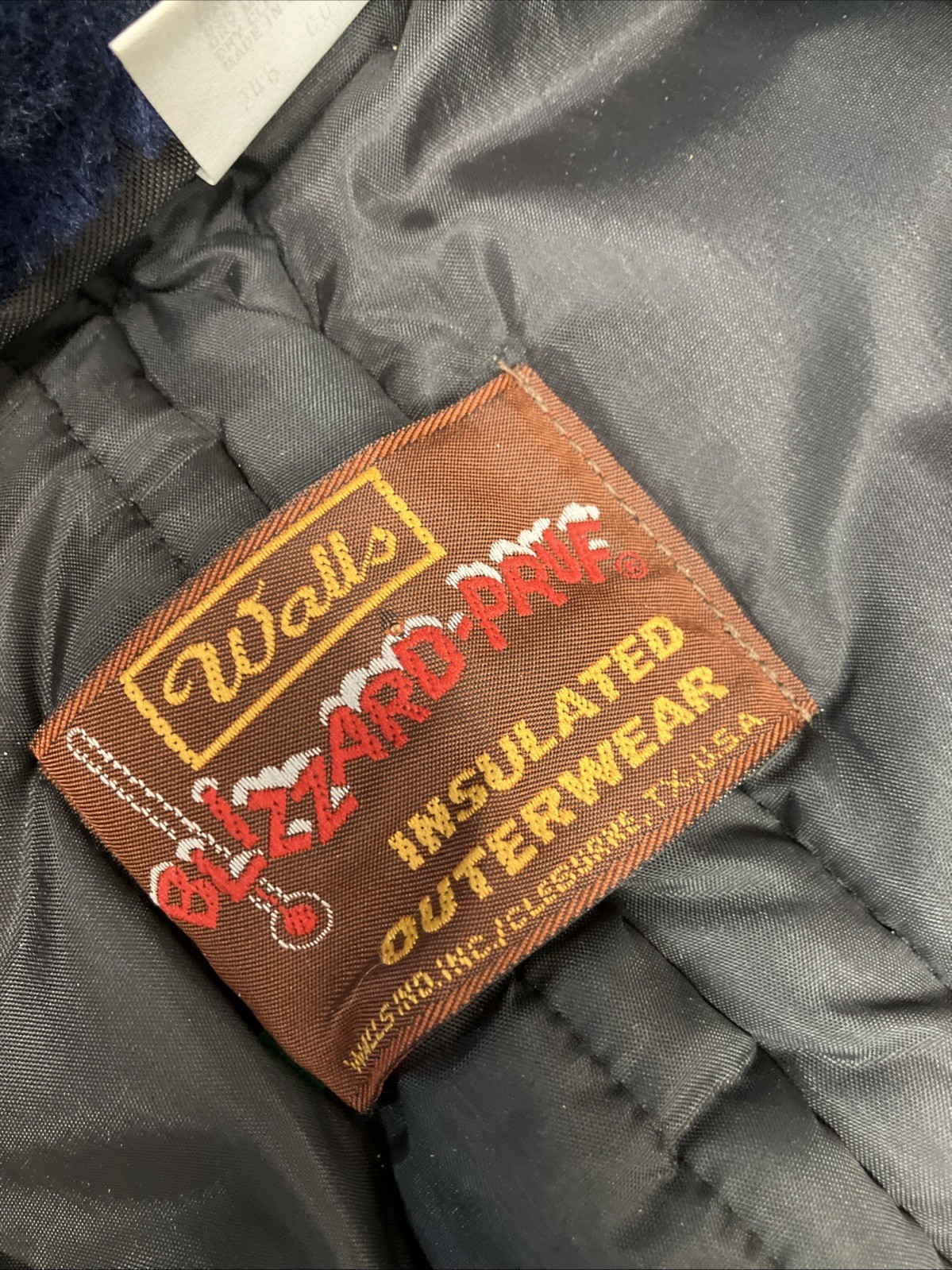 Vintage Mens Walls Blizzard Pruf Snowsuit Insulated Quilted Blue Hood Med 38 40