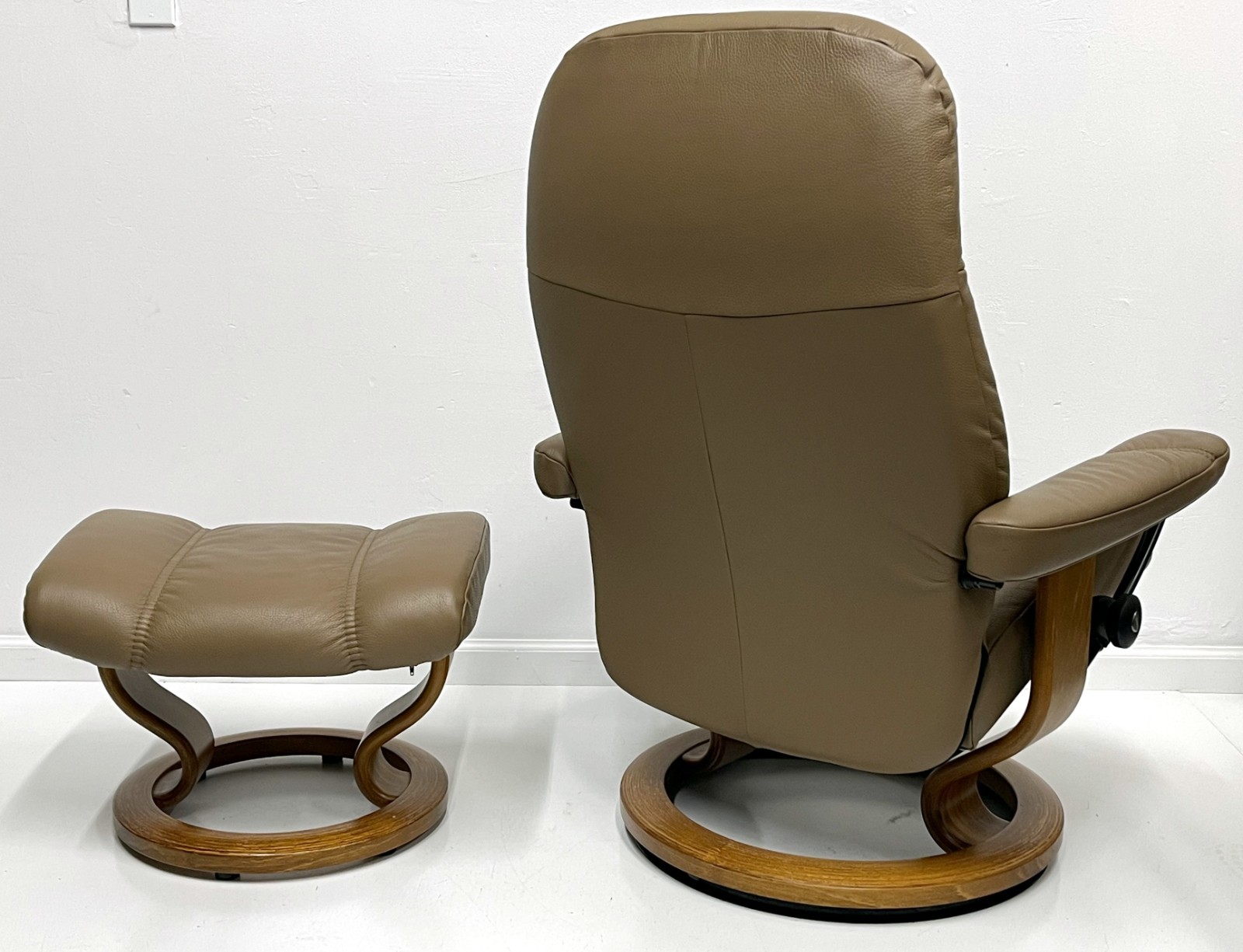 как выглядит Ekornes Stressless Medium CONSUL "Sahara" Leather Swivel Recliner Chair Ottoman фото