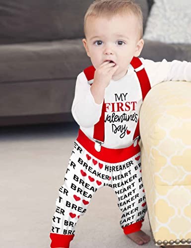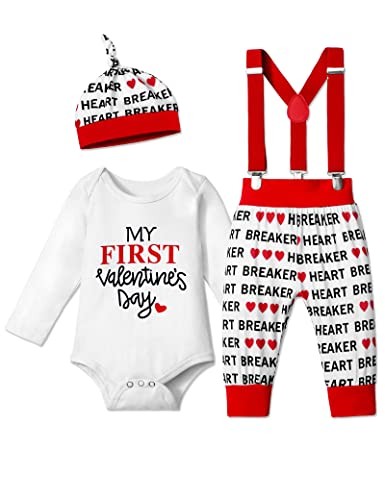 Baby Boy Valentines Day Outfit 3Pcs, Valentines Baby Romper 3-6 Months White