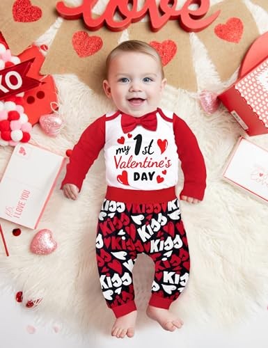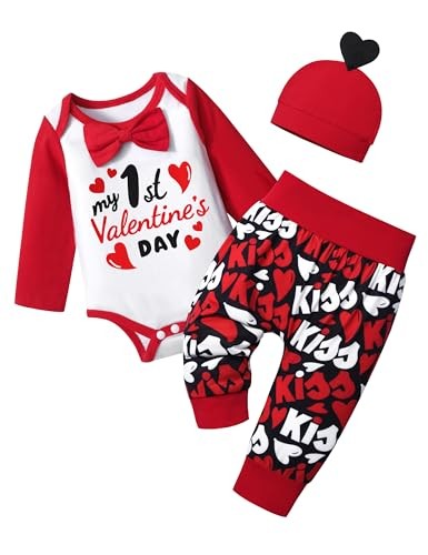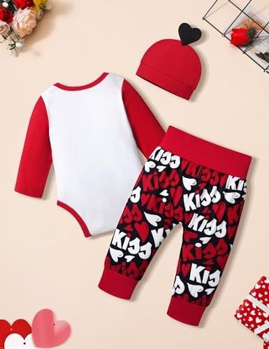 Baby Boy Valentines Day Outfit Long Sleeve Romper Pants Hat My 6-9 Months Red