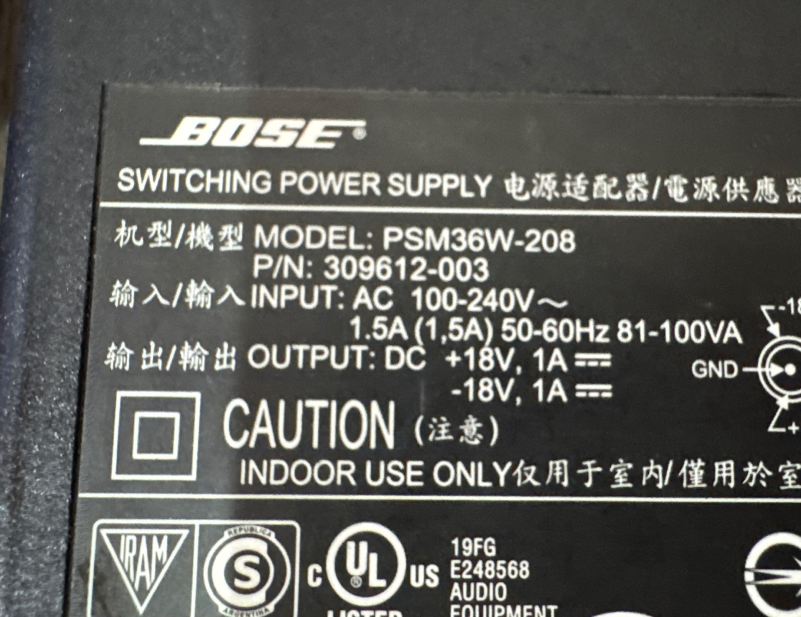 Bose SoundDock 1 Series I PSM36W-208 Power Adapter AC Cord Black ROUND PLUG