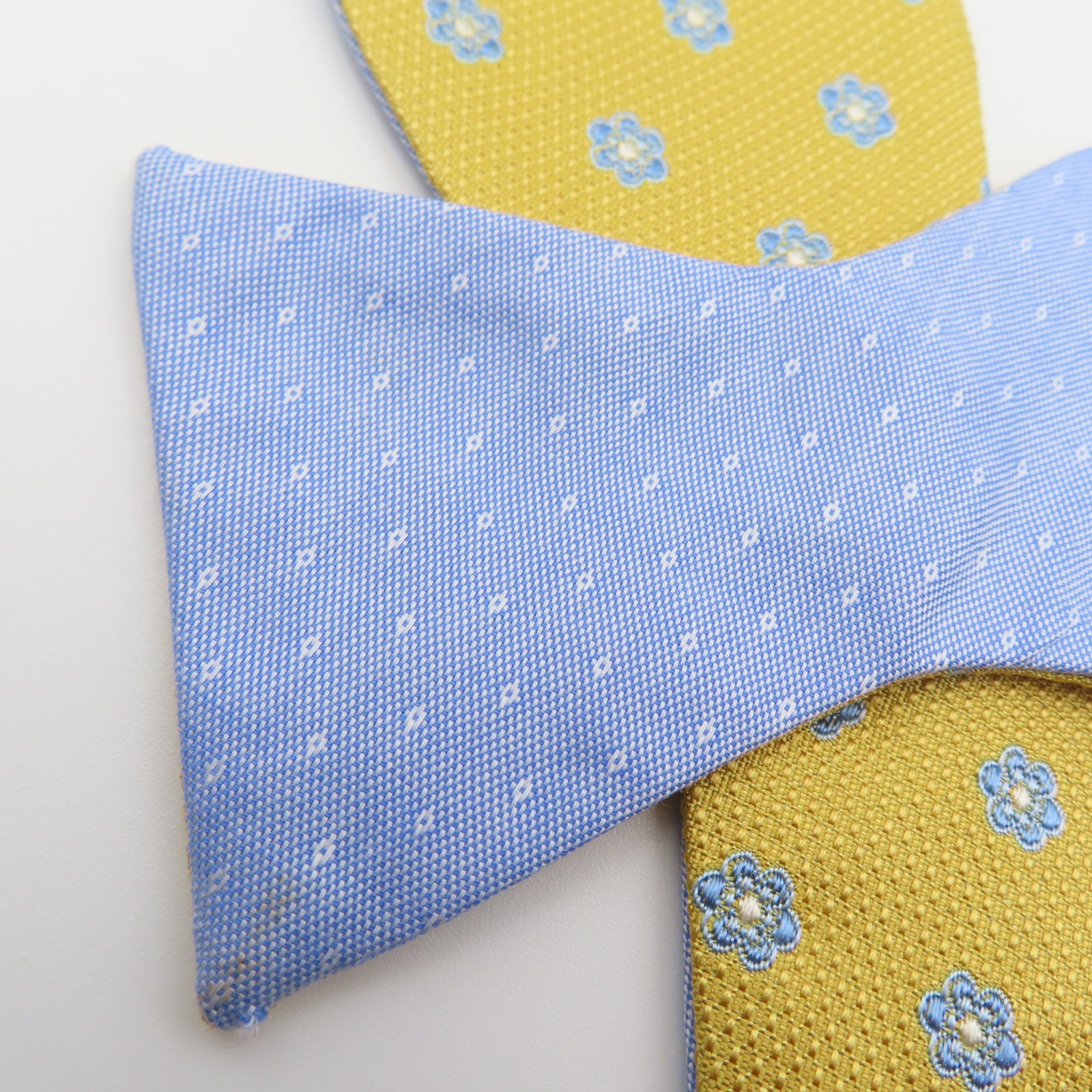 как выглядит Brooks Brothers Bow Tie Yellow Blue Polka Dot 2.25" Wide Silk USA Double Sided фото