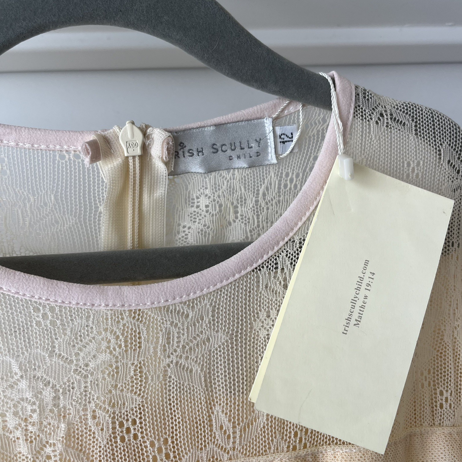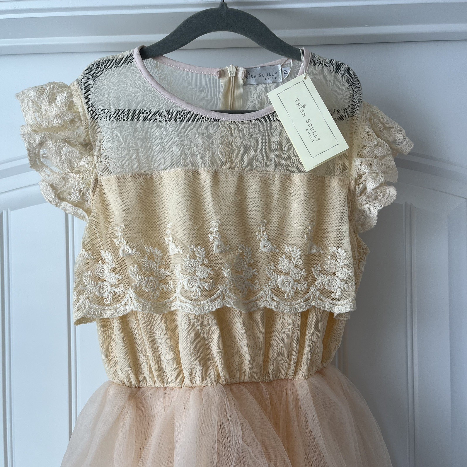 NEW Trish Scully Girls Dress Size 12 Long Beige Pink Layered Lace Wedding Party